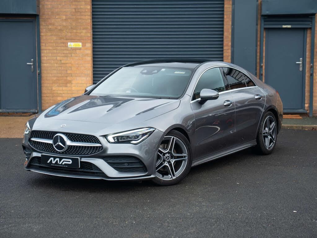 In stock at MP Auto Group is this 2021 Mercedes-Benz CLA 180 AMG Line Premium+ Auto finished in Mountain Grey with Black Artico Leather interior. A big-spec Premium+ model, offering standout features including the Panoramic Glass Roof, Apple CarPlay, electric heated memory seats, upgraded dual 10.25 displays, and full leather upholstery.