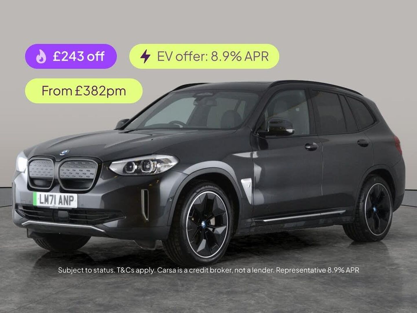 Discover the exceptional BMW iX3 Premier Edition in striking grey, enhanced with luxurious Vernasca leather seats and a captivating panoramic sunroof. This electric SUV features adaptive M Sport suspension for a supremely smooth drive, advanced LED headlights, and an array of driver aids like Park Assist and a reversing camera. Stay seamlessly connected with BMW Live Cockpit Professional and enjoy keyless entry, heated seats, and cutting-edge navigation. The iX3 brings comfort, innovation and electrifying performance together effortlessly. 1 service recorded, last serviced on 17/12/2025 at 29,207 miles. MOT to 14/11/2026. Visit our website for service history, online valuation, full vehicle specification plus multiple images. Certain features listed may be available via subscription packages at extra costs, please consult with BMW for details. This vehicle is VAT qualifying. Any feature/option specified here is from 3rd party data. We cannot guarantee the accuracy of any specification supplied by a 3rd party. We recommend that you physically check the specification of the vehicle on site prior to purchase. This information does not form part of the buying contract. Terms & Conditions apply. We have over 2,000 cars available from our 10 national branches, check our website to see all our stock. Our Trustpilot rating is 4.4/5 with over 9,000 reviews.