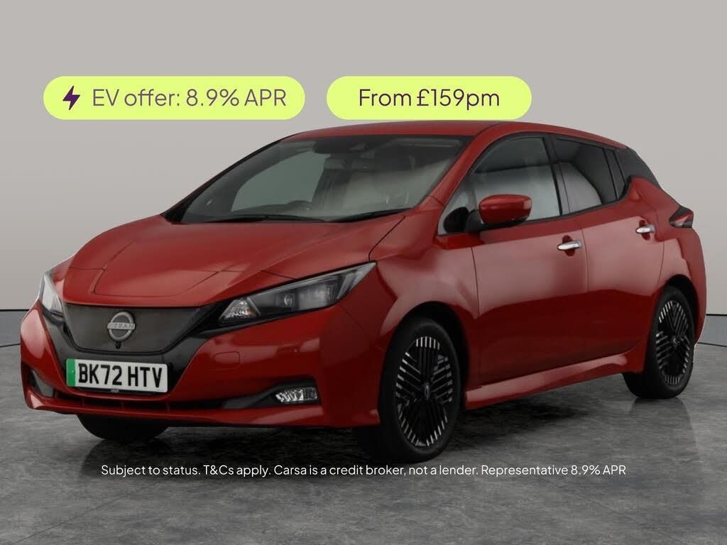 Experience the future with this striking red Nissan Leaf. Enjoy your favourite tunes with the premium BOSE sound system and upgraded audio, plus stay confident with the 360-degree surround view camera and around view monitor. LED headlights for a crisp look, heated seats for added comfort, and a heat pack for those chilly mornings. Advanced tech features like intelligent lane intervention, blind spot assist, lane departure warning, sat nav, cruise control, and Bluetooth connectivity complete an impressive list. Discover effortless electric driving today. 1 service recorded, last serviced on 19/09/2025 at 29,345 miles. MOT to 19/09/2026. Visit our website for service history, online valuation, full vehicle specification plus multiple images. This vehicle is VAT qualifying. Any feature/option specified here is from 3rd party data. We cannot guarantee the accuracy of any specification supplied by a 3rd party. We recommend that you physically check the specification of the vehicle on site prior to purchase. This information does not form part of the buying contract. Terms & Conditions apply. We have over 2,000 cars available from our 10 national branches, check our website to see all our stock. Our Trustpilot rating is 4.4/5 with over 9,000 reviews.