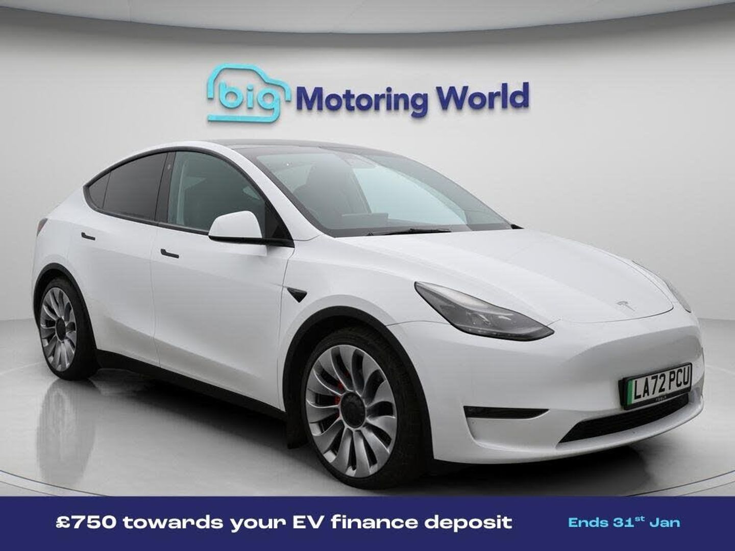 £750 towards your finance depo-Our Tesla Model Y is finished in White. Specification includes a range of fantastic features including £750 towards your finance deposit, All Wheel Drive, Panoramic Roof, 21'' Alloy Wheels, Leather Seats, Satellite Navigation, Privacy Glass, Heated Seats, Wireless Phone Charging, Rear View Camera Specification information is supplied by CAPHPI and may vary to the actual car. This data does not form any part of a buying contact. Please check specification prior to purchase in-store. The MOT is valid until December 2026, visit bigmotoringworld.co.uk for more photos, a 360 tour, service history and a free HPI report.Were BIG on peace of mind and this White Tesla Model Y has completed our comprehensive 200 point inspection and passed all checks. Its ready for you to drive away with immediate collection in-store. We include a 90-day warranty as standard plus an option to extend for up to 3 years.Reserve this car exclusively for you, safely and securely at bigmotoringworld.co.uk, with a fully refundable £99 deposit. Test drive before you buy, with no commitment, no hassle and a completely haggle free experience. Still searching and want to see thousands more cars? We are BIG on choice with over 8000 cars to choose from.Visit our award winning web site bigmotoringworld.co.uk.Were Big Motoring World and were BIG on what matters to you.