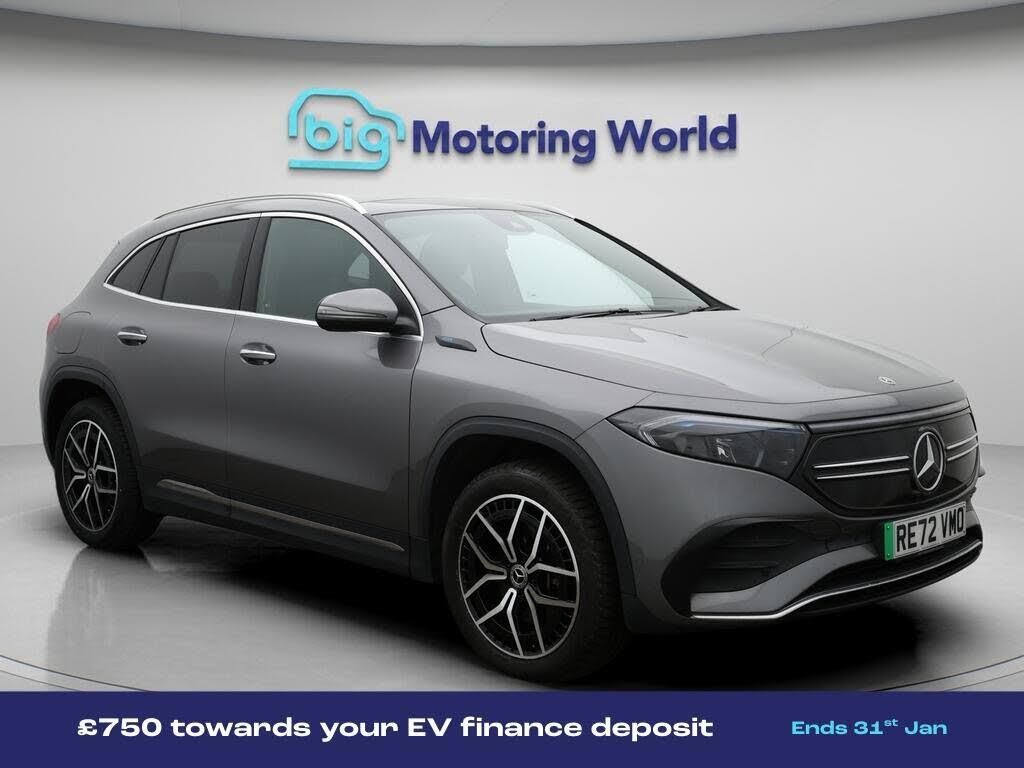 £750 towards your finance depo-Our Mercedes-Benz EQA is finished in Grey. Specification includes a range of fantastic features including £750 towards your finance deposit, Comfort Pack, 19'' Alloy wheels, Part Leather Seats, Air Suspension, Apple CarPlay, Burmester Speakers, AMG body styling, Parking Pack, Premium Specification information is supplied by CAPHPI and may vary to the actual car. This data does not form any part of a buying contact. Please check specification prior to purchase in-store. The MOT is valid until January 2027, visit bigmotoringworld.co.uk for more photos, a 360 tour, service history and a free HPI report.Were BIG on peace of mind and this Grey Mercedes-Benz EQA has completed our comprehensive 200 point inspection and passed all checks. Its ready for you to drive away with immediate collection in-store. We include a 90-day warranty as standard plus an option to extend for up to 3 years.Reserve this car exclusively for you, safely and securely at bigmotoringworld.co.uk, with a fully refundable £99 deposit. Test drive before you buy, with no commitment, no hassle and a completely haggle free experience. Still searching and want to see thousands more cars? We are BIG on choice with over 8000 cars to choose from.Visit our award winning web site bigmotoringworld.co.uk.Were Big Motoring World and were BIG on what matters to you.