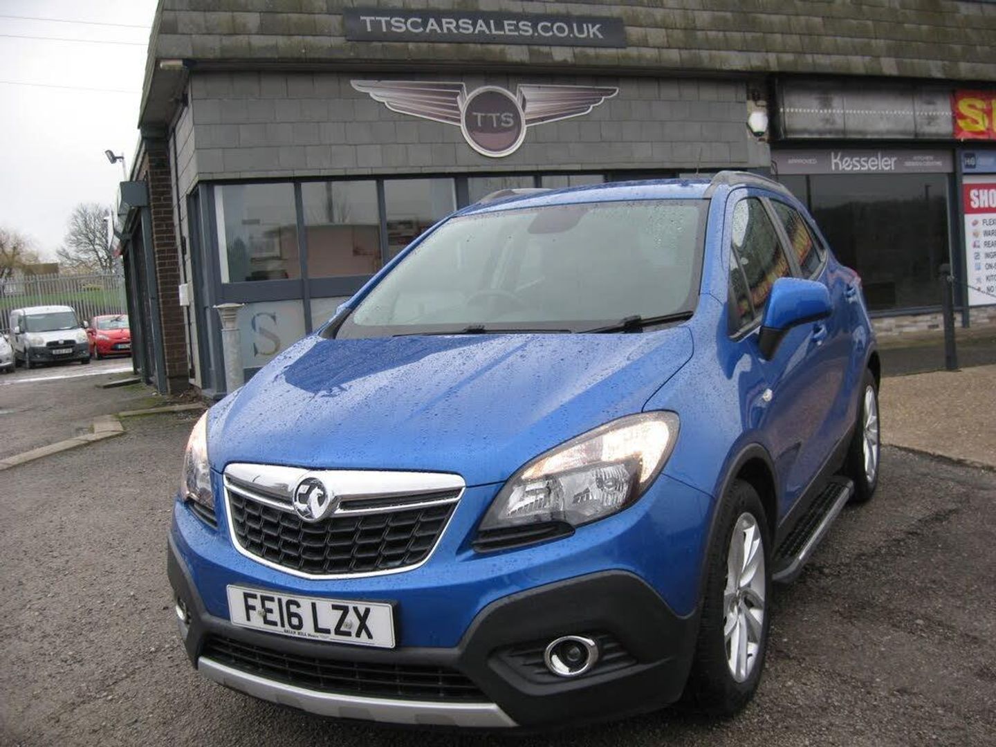 ZERO DEPOSIT FINANCE AVAILABLE AND ARRANGED. FREE 6 MONTHS WARRANTY T+CS APPLY. PART EXCHANGE WELCOME. ONLY 41152 MILES WITH 7 SERVICES TO 36249 MILES, ONLY 2 OWNERS FROM NEW, WILL HAVE A NEW MOT, 2 KEYS, STOP START ECO MODEL, EYECATCHING VAUXHALL MOKKA 1.6i Exclusiv finished in metallic blue with 18 alloy wheels, front and rear park sensors, daytime running lights, front fog lights, silver colour roof rails, fitted side steps, black and grey pattern cloth upholstery with driver armrest, dual zone climate control, air conditioning, cruise control with speed limiter, DAB radio, cd stereo with aux and usb sockets, bluetooth connectivity, front and rear electric windows, electric retractable door mirrors, multi function steering wheel, trip display, auto lights, rain sensing wipers, 5 speed manual, remote central locking, power steering, abs, traction control, tyre pressure monitor, front and side airbags, iso fix rear seats, looks and drives very well, must be seen. PART EXCHANGE, FINANCE AND WARRANTY AVAILABLE
