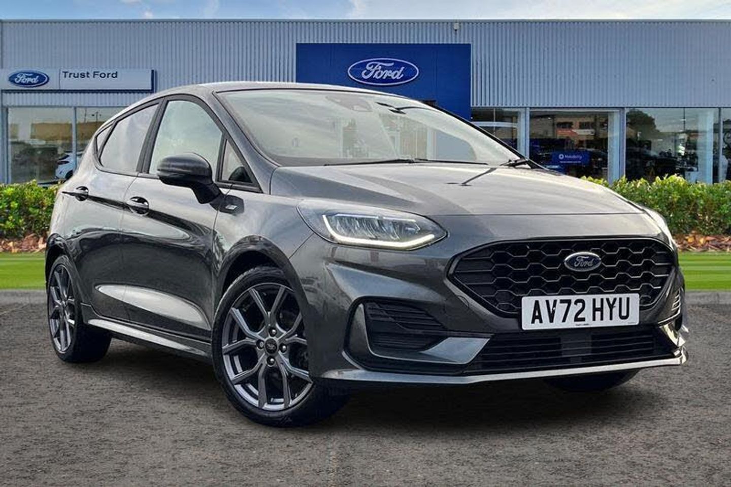 4.2 Colour TFT Ice blue illumination analogue cluster, Driver alert system, Electric power steering, Ford easy fuel, Lane keep assist, Lane keeping aid, Rear parking distance sensors, Selectable drive modes (Normal, Sport, Track), Trip computer, 3rd brake light, Auto high beam, Automatic headlights, Body colour bumpers, Body colour large rear spoiler, Body coloured electrically operated with side indicators, Electric front windows/one touch facility, Electric rear windows, Quickclear heated windscreen, Rain sensing wipers and auto dimming rear view mirror, Rear privacy glass, Rear side wing doors, Rear wiper, Unique ST-Line grille, full bodystyling kit and large body coloured rear spoiler, 3 rear headrests, 3 seat bench in 2nd row, Adjustable head restraints, Black headlining, Centre console with opening armrest, 2x cupholders, 12v and USB, Cloth upholstery with red stitching, Leather gear knob, Manual 2 way passenger seat adjust, Manual 4-way driver seat adjust, Manual air conditioning, Premium floor mats, Sensico wrapped steering wheel, Single front passenger seat, 3 point seatbelts on all rear seats, Electronic stability control with hill start assist, Front and rear seat belt warning, Manual child lock in rear doors, Tyre pressure monitoring system