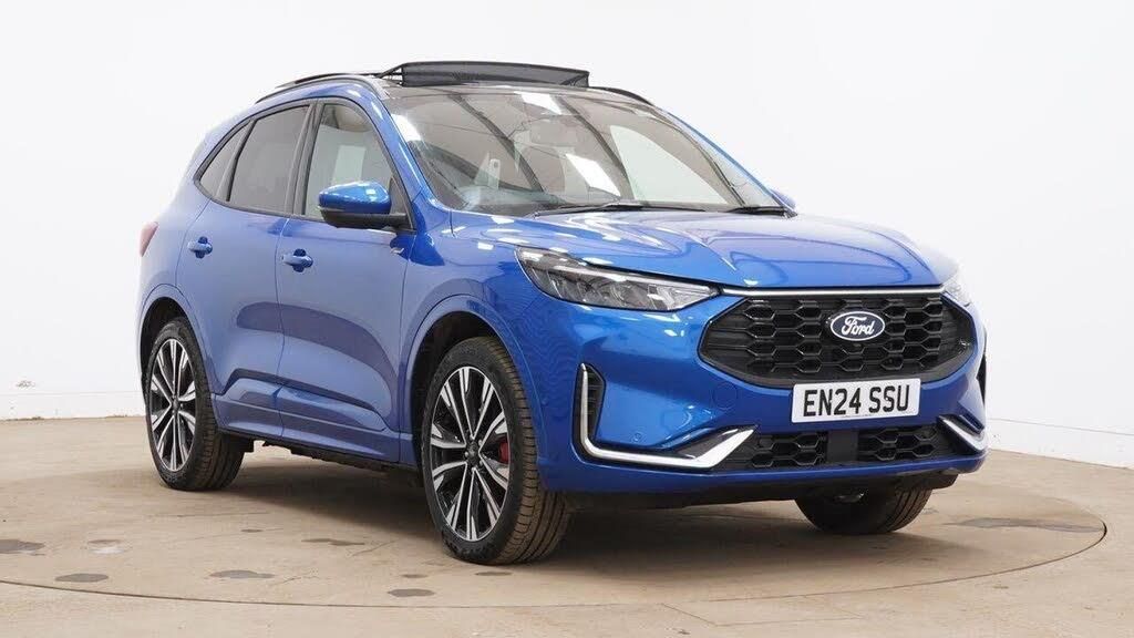 12-Way Ergonomic Power Adjust Driver's and Passenger's Seat, 12V Power Point in Floor Console, 12v Power Point in Cargo Area, 12v Socket - Voltage Regulator, 19in Alloy Wheels - ST-Line- Ebony Black - Machined Finish, 2nd Row Sliding Seats, 360 Degree Camera, ABS - Anti-lock Braking System, Acoustic Vehicle Alert System - AVAS, Adaptive Cruise Control, Air Conditioning - Electronic Automatic Temperature Control - EATC, Airbag - Driver and Front Passenger Side, Airbag - Front Passenger Deactivation Switch, Airbags - Driver and Front Passenger, Airbags - Front and Rear Side Curtain, Aluminium - Finish Front Scuff Plates with ST-Line Script, Aluminium Foot Pedals - ST-Line Design, Ambient Lighting, Auto Dimming Rear View Mirror, Auto Wipers, Automatic Door Relocking, Black Roof Rails, Centre Console with Electronic Parking Brake, Child Locks - Manual on Rear Doors, Cross Traffic Alert, Digital Colour 12.3in Instrument Cluster, Driver Assistance Pack, Driver and Passengers Sun Visor with Illumination, Dual Exhaust Tailpipes with Unique Brushed Stainless Steel Finish, EPAS - Electric Power Assisted Steering, Electric Parking Brake with Auto Hold, Electrical Charging Point in Second Row, Engine Immobiliser - SecuriLock, Enhanced Electronic Stability Control - ESC with Traction Control - Emergency Brake Assist - EBA - Hill Start Assist - HSA and Trailer Sway Control, Exterior Door Handles - Body Coloured, Ford Easy Fuel System, Ford Keyfree System - Keyless Entry with Ford Power Starter Button, Ford SYNC 4 Navigation, Front Seats - 2-Way Manual Height Adjust Passive Head Restraints, Front Seats - Drivers and Passengers Seatback Map Pockets, Front Seats - Sports Style V-shape with High Bolster, Front Windows - Laminated Glass, Front and Rear Bumper - Sporty Body Colour with Rear Ebony High-Gloss Insert, Front and Rear Floor Mats with Red Stitching, Front and Rear Parking Sensors, Full LED Headlamps, Gearshift - Automatic - Electronic Rotary Gearshift Dial, Glovebox Lights, Handsfree Power Tailgate, Headlights - Automatic Follow Me Home Lighting, Headlights - Automatic High Beam Assist, Headlights - Levelling System - Manual, Headlights - Unique Bending, Headliner - Sports Dark, Heated and Power Folding Door Mirrors - Puddle Lights - Memory Function - Camera, High-Mounted Brake Light, Kuga Badge, LED Daytime Running Lights, LED Fog Lights - Front, Lane Keeping Aid with Lane Departure Warning, Large Rear Spoiler, Load Compartment - Lights, Load Compartment - Tie Down Hooks, Load Compartment Carpet, Locking Wheel Nuts, Lower Bodyside Moulding - Body Colour, Lower Door Frame Beltline - Black, Mini Overhead Console with Sunglasses Holder Bin, MyKey, Pop-Out Door Edge Protectors, Power Door Deadlocks - Double Locking, Power Door Locks, Power Opening Panoramic Roof, Pre-Collision Assist with Autonomous Emergency Braking, Quickclear Heated Windscreen, Rear Duct on B-Pillar, Rear Lights - LED, Rear Privacy Glass, Rear Seat - 60-40 Split Folding Seats, Rear Seat Centre Head Restraint, Rear Seats - 2-Way Head Restraint Up-Down, Rear Seats - Folding Centre Armrest with Integrated Cup Holder, Rear Seats - Sliding Seat Adjust Tracks - Fore-Aft, Red Brake Calipers, Remote Tailgate Release, Removable Package Tray, Rocker Panel Mouldings - Body Colour - ST-Line Design, ST-Line Badge on Left and Right Side Wings, ST-Line Bodystyling Kit, ST-Line Front and Rear Bumper Moulding - Body Colour, Seat Belt - Drivers - Front Passenger and Rear Seat Belt Reminder Alert, Seat Belts - Front 3-Point Seatbelts with Load Limiter, Seat Belts - Front Height Adjustable, Seat Belts - Rear Retractable Rear Belt - 3-Point All Positions, Seats - ISOFIX Mounting Provision for Child Seats - Outer Seats Only, Selectable Drive Modes, Single Rear Fog Light, Standard Home Charging Cable - 3-Pin Domestic Socket 230V, Steering Column - Locking Electric, Steering Column - Rake and Reach Adjustment, Steering Wheel - ST-Line Sports-Style Perforated Sensico-Trimmed with Red Stitching
