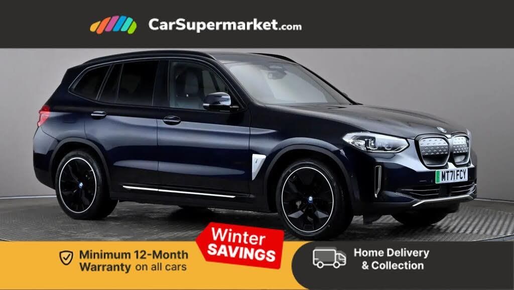 BMW Live Cockpit Professional sat nav system including 10.25" high resolution display and Intelligent Voice Assistant,BMW Online services,BMW Teleservices,Enhanced bluetooth with wireless charging,Front/rear Parking distance control,Parking assistant,PAS,Reversing assist camera,Wifi hotspot preparation,eDrive exterior sound,Mode 3 charging cable 22kW,BMW iconic sound electric,DAB radio,Adaptive LED Headlights with Low and high beam headlights in Bi-LED, LED daytime running lights in corona ring style and LED Indicators,BMW Individual high gloss shadow line with extended contents,Body coloured bumpers,Exterior mirrors - electrically folding with anti-dazzle,High gloss black shadow line roof rails,High gloss shadowline exterior trim,Interior rear view electrochromatic mirror with automatic anti dazzle function,Metallic paint,Model specific design elements - Frozen grey decorative elements and pearl chrome decorative strip,Panoramic glass sunroof, two parts, electric actuation, sliding function, wind deflector, sun protection with floating headliner,Sun protection glass,3 zone automatic air conditioning,Ambient lighting,Anthracite headlining,Driver and front passenger heated seats,Electric adjustable seats with memory function,Front and rear headrests,Front sports seats,Seat backrest adjustment for rear seat,Sport leather steering wheel,Through loading system with 40/20/40 split folding rear seat,Vernasca leather upholstery,Driving assistant professional pack - iX3,Extended storage pack - iX3,ABS/EBD,Active protection,Automatic Stability Control (ASC),BMW emergency call,Three 3 point rear seatbelts,Tyre pressure monitoring system,Aluminium fine cutting interior trim with pearl chrome highlight trim finishers,Galvanic embellisher for controls,Sensatec instrument panel,20" Aero jet black alloy wheels - Style 843,BMW mobility system,Vernasca Leather - Black with Grey Stitching