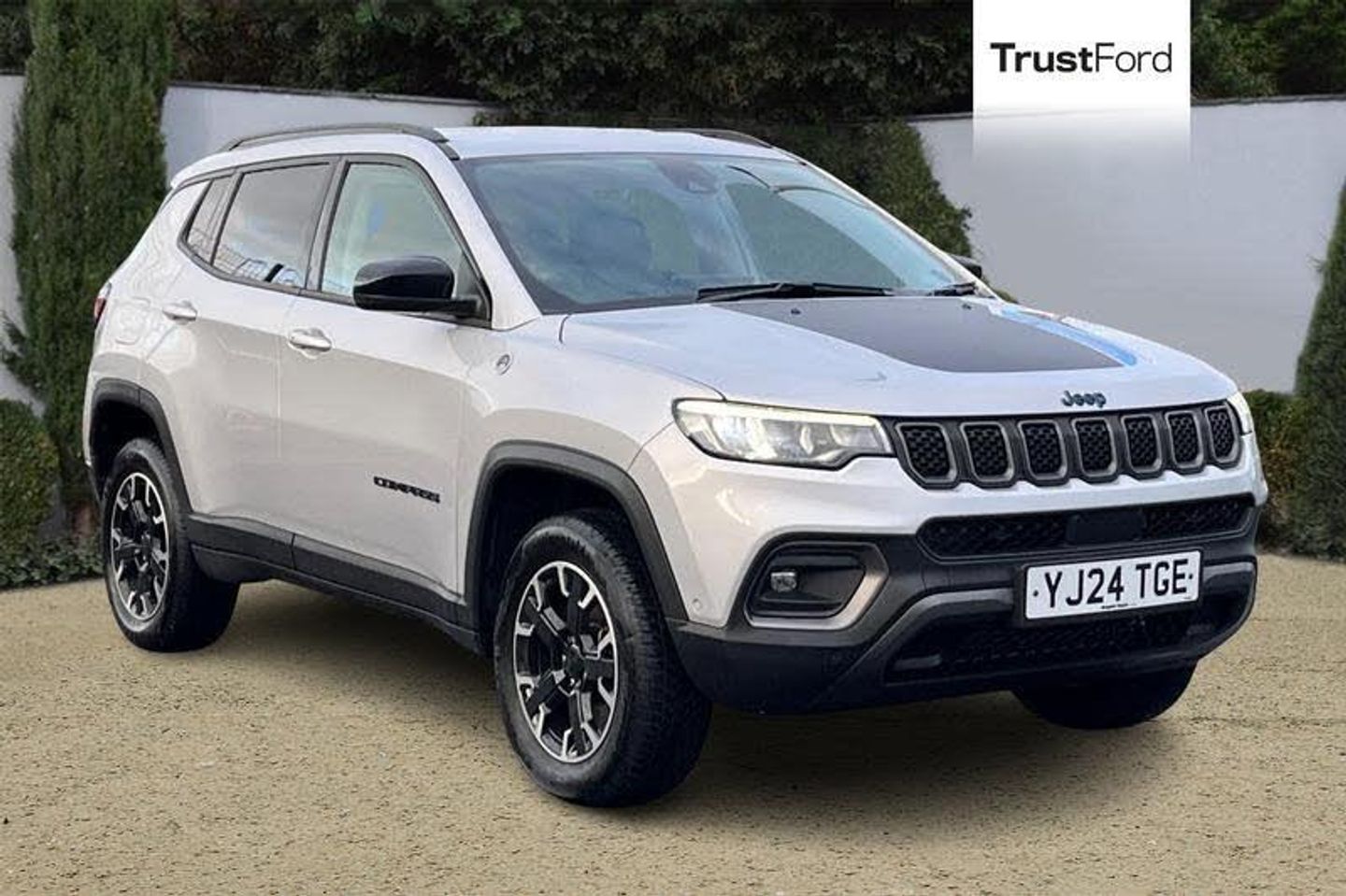 160 MPH primary speedometer, Active lane management, Active speed limiting device, Adaptive cruise control with Stop and Go, Drowsy driver detection, E-call, Electric power steering, English owners handbook, Extended Guide in English, Full speed forward collision warning plus mitigation, Instrument cluster- 10.25 TFT Colour display, Instrument panel, Intelligent speed assist, Media centre electronic storage, Outside temperature display, Parallel and perpendicular park assist with exit, Parksense front and rear park assist system, Selec terrain system with sport mode, Tachometer, TBM - Connected services (e-call), Traffic sign recognition (TSR), United Kingdom equipment group, Vehicle information centre, Wireless charging pad, 4XE badge/e-Hybrid badge, Accent/body colour bumpers, Aspherical driver's exterior mirror, Auto dimming rear view mirror, Auto high beam, Automatic headlights, Belly pan - underbody protection, Black side roof rails, Black window surrounds, Body colour door handles, Carry back MHEV, Chromed DLO, Coastdown and run-in optimization, Compass badge, Daytime running lights, Deep tint privacy glass, Door mirrors: power adjustable and folding, heated with auto folding function and indicators, Exterior door mirrors with heating element, Front fascia/belly pan skid plate, Gloss black exterior door mirrors, Gloss Black Grille - Gloss Black Crosshairs, Headlamp leveling system, Headlamp off time delay, Heated rear window, Higher ground clearance, Jeep badge, LED front fog lamps, LED projector headlamps, LED rear lights, LED tail lights, Lower bodyside cladding in black, Neutral gray headlamp bezels, Neutral grey exterior accents, Off road bumper, Partial body cover protection, Power windows - driver and passenger express up/down, Rain sensitive windscreen wipers, Rear fascia, Rear fog lamps, Rear Jeep Badge, Rear side wing doors, Rear windshield washer/wiper, Red rear tow hook, Removable short mast antenna, Skid plate shield - front suspension, Skid plate shield - fuel tank, Skid plate shield - transfer case, Skid plate shield - transmission, Smartbeam headlights, Third brake light, Trail Rated, Trail rated badges, Trailer sway damping, Trailhawk badges, Trailhawk hood decal, UK front number plate bracket, Windshield wiper de-icer, 12V auxiliary power outlet - 2nd row, 3 rear seat head restraints, 3 seat bench in 2nd row, 6 way manual adjust front passenger seat, 60/40 split folding rear seat, All weather floormats with Jeep logo, Cargo area lights, Cargo compartment carpet, Cargo compartment cover, Cargo compartment organiser, Cargo compartment reversible mat, Cargo load floor, Cargo tie down loops, Centre console with sliding armrest, Centre rear 3 point seat belt, Child seat anchorage points, Cloth/vinyl upholstery, Coat hooks, Dash insulation, Driver assist handle, Driver seat 6 way manual adjust, Driver seat memory function, Dual zone temperature control with preconditioning capability and heater, Easy To Clean Seat, Fold flat front passenger seat, Front head restraints, Front height-adjust seatbelts, Front map pocket LED lamps, Front map reading lights, Front seats back map pockets, Full length centre console, Glovebox light, Glovebox with damped soft close door, Heated front seats, Heated steering wheel, Height adjustable cargo load floor, Illuminated door entry system, Interior door handle LED lamps, Internal rear grab handles, Leather wrapped gear knob, No Alternator, Overhead console, Overhead dome LED lamps, Passenger assist handles, Power 2-way driver lumbar adjustment, Rear air conditioning and heater vents, Rear seat armrest with cupholder, Single front passenger seat, Spare wheel storage insulation, Sunvisors with illuminated vanity mirrors, Tilt/telescopic steering column, Vinyl wrap steering wheel, AEB with pedestrian and cyclist detection, All speed traction control, Automatic electronic hold brake, Driver's front airbag, Dual note electric horns, Dual tyre pressure - turn changes, Electrical stee