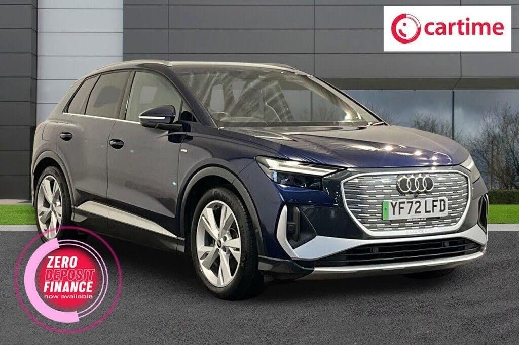 This 2022 Audi Q4 e-tron S line is a superb example, having had only one owner and boasting a clear vehicle history check. As an electric vehicle, it offers a battery with a total capacity of 55 kWh, providing a maximum range of 211 miles when new. Charging is convenient, with a full charge at home using a 7kW charger taking approximately 7 hours and 30 minutes, while rapid public charging can take you from empty to 80% in just 32 minutes thanks to its 110kW DC charging capability. This S line model comes equipped with LED headlights and daytime running lights, heated front seats for added comfort, and rear parking sensors to assist with manoeuvring. The MOT is valid until December 2026. The Audi Q4 e-tron S line stands out with its practical design, featuring large boot space perfect for luggage or shopping. Its 7.2 kW onboard charger ensures efficient power management. These features, combined with its electric powertrain and the reputable Audi S line trim, position this vehicle as a compelling choice for those seeking a refined and capable electric SUV. The single owner and excellent provenance further enhance its appeal. Lifetime warranty available on this car, plus a £1,000 finance contribution when you part exchange. Voted UK Car Supermarket of the Year two years running, we offer 0% finance, part exchange, and lifetime warranties across our entire range. Every car is thoroughly inspected before sale and comes with a full history check, so you can buy with complete peace of mind. Buy with confidence on our best finance rates. Proud winners of the CarGurus Top-Rated Dealer 2022 and the MotoNovo Extra Mile Award.