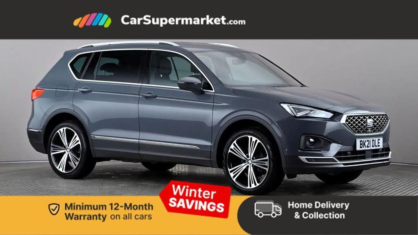 'Lights On' Reminder warning buzzer,10.25" digital cockpit,Adaptive cruise control with speed limiter,Bluetooth audio streaming with handsfree system,Digital clock,Digital cockpit,e-Call (emergency call),Front assist city emergency braking and pedestrian protection,Full Link Wireless Smartphone Integration with Mirror Link, Apple Car Play,Lane assist,Low fuel warning light,Outside temperature gauge,Power assist steering,Rear view camera,RPM counter,Seat connect with safety, service, remote and online,SEAT Drive profile-4 different modes, progressive steering, 4Drive versions with off-road/snow, steering response, throttle response, gear shifts mode,Self parking functionality (includes front and rear parking sensors),Top view camera,Trip computer,Wash water level indicator,Comfort suspension,XDS electronic differential lock,Navigation system with 9.2" colour touchscreen with proximity sensor, 3D Map display, DAB, AM/FM Radio, 3 USB (type C), Aux-in, 8 speakers, SD card,Steering wheel mounted audio/telephone controls,USB (type C) cable for Apple and Android compatibility,Auto dimming rear view mirror,Auto headlights with automatic coming and leaving home function,Automatic headlight adjustment,Black bumpers with chrome detail,Body colour door mirrors and handles,Chrome front grille frame,Chrome roof rails,Chrome window trim,Coast to coast lighting,Dark tinted rear windows,Electric front/rear windows,Electrically adjustable and folding door mirrors,Front halogen fog lights with cornering function,Fuel door linked to central locking,Full LED headlights with LED rear lights,Heated door mirrors,Hidden exhaust pipe,Illuminated aluminium front door sill with trim logo,LED daytime running lights,LED licence plate lighting,Rain sensing wipers,Rear fog lights,Rear wash/wipe,Welcome lighting,3 zone climate control,Ambient spot lighting and front footwell illumination,Black interior roof,Centre armrest in front with air outlet in rear,Driver and passenger sunvisor with covered and illuminated mirror,Driver's electric lumbar adjustment,Easy fold rear seat system - second and third row,Electric driver's seat with memory,Folding table on front seat backrests,Forward and backward adjustable seats 2nd row,Four cargo rings in the boot,Front cupholders,Front passenger seat lumbar adjustment,Front seat back storage pockets,Gear shift indicator,Height adjustable front headrests,Height adjustable passenger seat,Illuminated boot,Illuminated glovebox,Instrument lighting with brightness control,ISOFIX points in outer 2nd row seats and front passenger seat with top tether anchorage points,Leather gear knob,Leather upholstery with sports seats,Leather wrapped multifunction steering wheel,Luggage compartment floor with split function,Rear armrest and easy back seat release mechanism from boot,Rear head restraints,Sliding boot cover,Storage compartment in roof console for sunglasses,Storage draw under front passenger seat,Three 12V sockets,White ambient lighting in front and rear door panels + LED lights in interior door handles,Winter pack - Tarraco Xcellence Lux,3x3 point rear seatbelts,ABS,Active front head restraints,Driver/front passenger airbag,Drivers knee airbag,Electronic parking brake with auto hold,Electronic stability control,Front passenger airbag deactivation,Front side airbags,Hill hold control,Seatbelt reminders for all seats,Tiredness recognition system,Traction control,Two curtain airbags,Tyre pressure monitoring system,Alarm,Central locking,Keyless enter and go with electric tailgate with virtual pedal,Locking wheel bolts,Chrome interior detailing - door and dashboard decorative inserts,20" Supreme machined alloy wheels 37/1,Tool kit