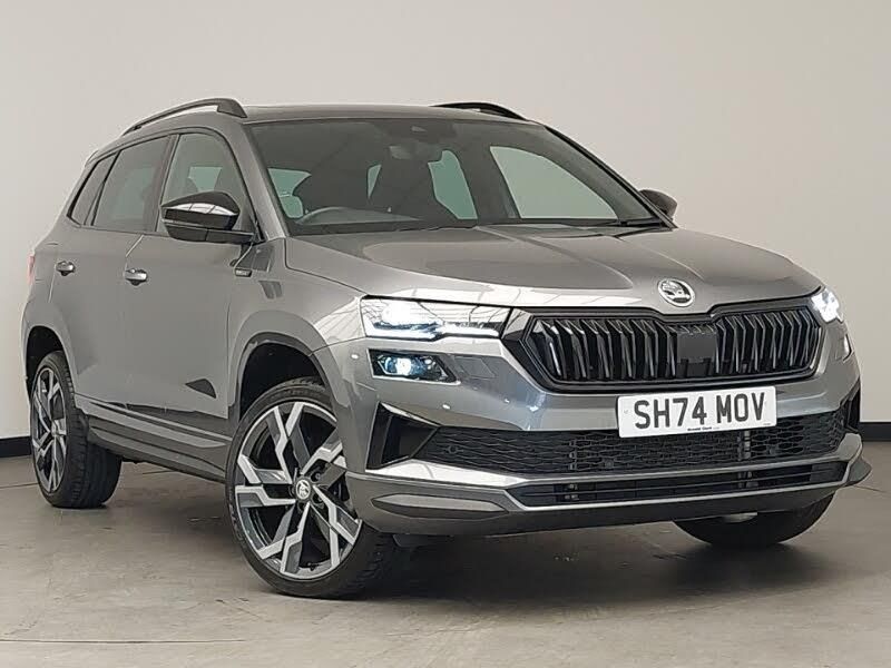 Virtual Cockpit - 10.25" digital display, Virtual pedal with electrically operated boot door, Wireless smartphone charging, USB C Port x 2 in front centre console, Start/stop system with regenerative braking, SmartLink wireless for Apple and wired for Android, 8" Digital display, DAB radio with Bluetooth, Aero front windscreen wipers with intermittent function, Auto dimming rear view mirror with light and rain sensors, Black door mirrors, Black radiator grille, Black roof rails, Electric front and rear windows with child proof lock, Front door steps with SportLine logo, LED daytime running lights, LED rear lights with high functionality welcome effect and dynamic indicators, Panoramic sliding sunroof, Rear window wiper with washer system and intermittent control, Sportline decorative inserts with badging, Sportline badge on front fender, Sports front and rear bumpers, 3 spoke sports leather heated multifunction steering wheel with DSG paddles, Isofix child seat preparation outer rear, Manual lumbar support for front seats, Rear seats fixed folding and divided 60:40, LED Interior lighting pack with Skoda welcome logo - Karoq, Hill hold control, Keyless entry and start/stop, Black air vent surround, Black centre console, carbon door decor, Satin black dashboard, Satin black door trim, 19" Sagittarius anthracite alloy wheels