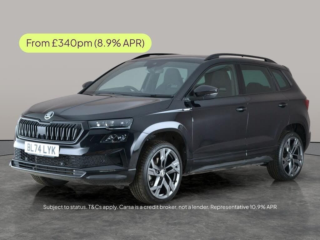 Experience the dynamic Skoda Karoq SportLine in striking black, featuring a panoramic sunroof that floods the interior with light. Enjoy total comfort with heated seats and a heated steering wheel, plus seamless journeys thanks to sat nav and Apple CarPlay. Keyless entry, LED headlights, and a reversing camera offer added convenience and safety, while active lane assist and lane departure warning provide peace of mind on every drive. Discover an SUV built for style, technology, and comfort. 1 service recorded, last serviced on 12/01/2026 at 10,359 miles. MOT to 18/12/2027. Visit our website for service history, online valuation, full vehicle specification plus multiple images. This vehicle is VAT qualifying. Any feature/option specified here is from 3rd party data. We cannot guarantee the accuracy of any specification supplied by a 3rd party. We recommend that you physically check the specification of the vehicle on site prior to purchase. This information does not form part of the buying contract. Terms & Conditions apply. We have over 2,000 cars available from our 10 national branches, check our website to see all our stock. Our Trustpilot rating is 4.4/5 with over 9,000 reviews.