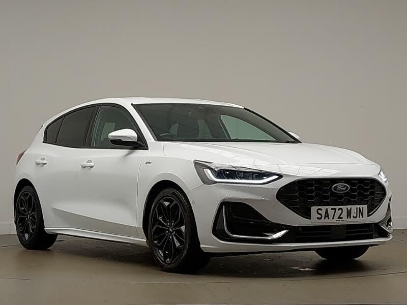18" 5x3 spoke pearl grey high gloss machined finish alloy wheels with mini spare wheel, Unique ST-Line grille, full bodystyling kit, and large body coloured rear spoiler, Winter pack - Focus, Ford SYNC4 Nav with 13.2'' touchscreen, DAB, Emergency Assistance, Apple Carplay & Android Auto, B&O Premium Audio with 10 speakers, FordPass Connect, Bluetooth system, Wireless charging pad, 2 USB ports, Full sensico premium upholstery, Lane keeping system - lane keeping alert and lane keeping aid, Auto headlamps (on/off), Quickclear heated windscreen
