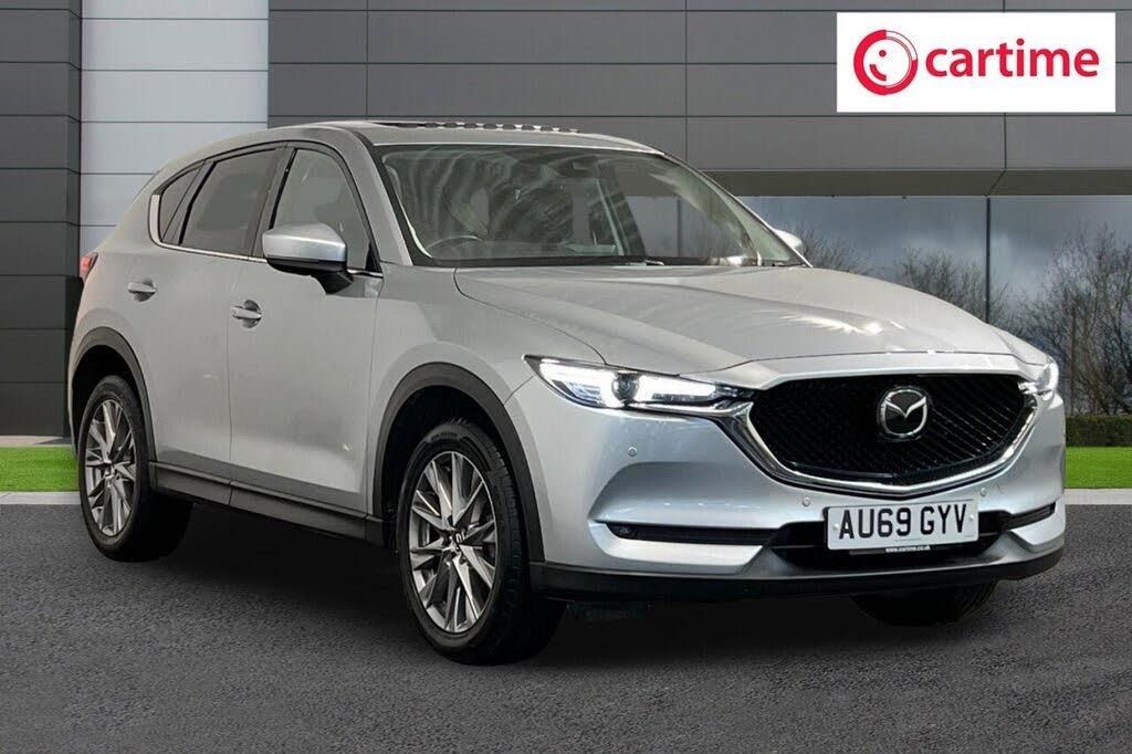 19in Alloy Wheels - Silver, 7in Colour Touch Screen Display, ABS - Anti Lock Braking System, Advanced Smart City Brake Support, AM-FM-DAB Radio - Single CD - MP3 Featuring 10 Bose Speakers, Apple CarPlay and Android Auto, Auto Dimming Rear View Mirror, Auxiliary - AUX - and Two USB Input, Blind Spot Monitoring with Rear Cross Traffic Alert, Bumper - Front Body Coloured with Black Lower Mouldings, Bumper - Rear Body Coloured with Black Lower Moulding, Colour Active Driving Display - Colour Head-Up Display, Colour TFT Display with Traffic Sign Recognition, Door Mirrors - Electrically Adjustable - Heated - Auto Power Folding with Integrated Indicator Lights, Door Pockets - Driver and Front Passenger, Drivers Seat - Power Slide - Recline - Height and Lumbar Adjustment with Memory Function linked to Smart Key, DSC - Dynamic Stability Control, Dual Front Airbags, Dual Zone Climate-Controlled Air-Conditioning with Rear Air Vents, EBD - Electronic Brakeforce Distribution, Electric Windows - Front and Rear with One-Touch Auto Down - Up, Electrical Power Outlet, Electronic Parking Brake with Auto Hold Function, Electronic Parking Brake with Auto-Disengage Function, Emergency Stop Signalling System - ESS, Emergency Tyre Repair Kit, Engine Start-Stop Button, Front and Rear Curtain Airbags, Front Fog Lights - LED, Front Passenger Airbag Cut-Off Switch, Front Passengers Seat Power Slide Recline and Height Adjustment, Front Side Airbags, Front Wiper De-Icer, Gear Shift - Leather-Wrapped, Gear Shift Indicator, Glovebox Illumination, Grab Handles - Front Passenger and Two Rear with Coat Hooks, Headlights - Adaptive Front Lighting System, Headlights - Coming-Leaving Home, Headlights - Dusk-Sensing Lights, Headlights - LED with Auto Headlight Levelling, Heated Front Seats with 3-Stage Settings, Heated Steering Wheel, High Beam Control, Hill Hold Assist, Instrument Panel and Door Trim - Wood Grain Metal, Integrated Bluetooth System, Intelligent Speed Assist, Interior Lighting - Incandescent, ISOFIX Child Seat Anchorage for Outer Rear Seats, Karakuri Tonneau Cover, Lane Keep Assist with Lane Departure Warning System, Leather - Black, Leather-wrapped with Unique Steering Wheel Stitching and Chrome Centre Bezel, LED Rear Signature Combination Lights, LED Signature Daytime Running Lights, Luggage Compartment - Light, Luggage Compartment - Power Outlet, Mazda Navigation System - European Mapping with Alternative Route Calculations - Point of Interest Search and 3-Years Free Map Updates, Mazda Radar Cruise Control, Multimedia Commander, Parking Sensors - Front and Rear with Audible Warning, Power Assisted Steering, Power Liftgate, Privacy Glass - Rear and Rear Side Windows, Rain-Sensing Front Wipers, Rear Seats - Manual Recline Adjustment, Remote Central Locking with Deadlocking and Automatic Door Lock when Driving, Reversing Camera, Roof Headlining - Light - Ceiling and Pillars, Roof Mounted Sunglasses Holder, SCR - Secondary Collision Reduction, Seat - 40-20-40 Karakuri Fold Flat Rear, Seatback Pocket - Driver and Front Passenger, Seatbelt Reminder Audible Warning - Driver-Passenger and Rear Seat, Seatbelts - Front - 3 Point - ELR x 2 with Pre-Tensioners, Seatbelts - Rear - 3-Point - ELR, Seats Rear - Folding Centre Armrest Equipped with USB Input, Shark Fin Antenna, Smart Brake Support with Forward Obstruction Warning, Smart Keyless Entry, Sonic Silver, Spoiler - Rear Roof Body Coloured, Steering Wheel - Mounted Audio and Bluetooth Controls, Steering Wheel - Tilt and Height Adjustment, Storage Spaces - Front Centre Console with Two Cupholders, Sunroof - Power Tilt and Slide, Sunvisors - Drivers and Front Passengers with Covered Vanity Mirror and Drivers Ticket Holder, Tailpipes - Dual Chrome, TCS - Traction Control System, Thatcham Category 1 Alarm and Immobiliser, Trip Computer, Tyre Pressure Monitoring System, Wipers - Rear Adjustable Speed with Intermittent