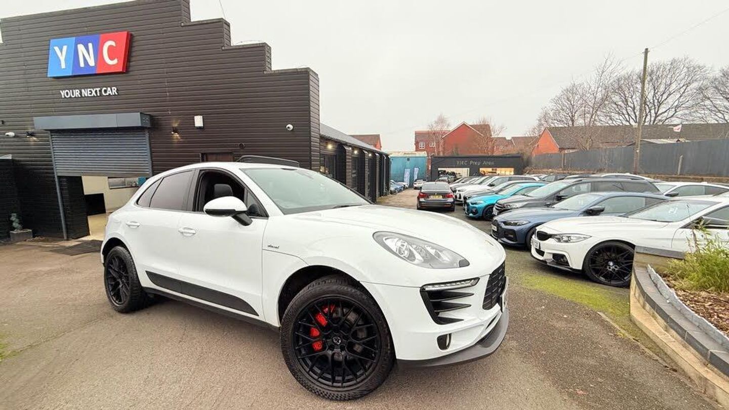 AK65FLF PLEASE QUOTE THIS REG WHEN ENQURING. Welcome To Ync -- The Home Of Performance Styled Bmws - Quality Cars - Unparalleled In House Enhancements & Expertly Fitted! https://www.youtube.com/watch?v=fEbqxS4k0uASPEC LIST OPTIONS FOR THIS VEHICLE INCLUDES. GLASS PANROOF. HEATED & ELECTRIC BLACK LEATHER. PDK. 20' PORSCHE SATIN BLACK ALLOYS. 12 MONTHS TAX £265This 2015 Porsche Macan TD V6 S presents a compelling blend of performance and practicality, boasting a Euro 6 compliant 3.0L Diesel engine and a sophisticated Four Wheel Drive system. Finished in a sleek black leather interior, this S trim model features striking 20 inch Macan SportDesign alloy wheels and silver sports tailpipes, hinting at its dynamic capabilities. Enjoy an open and airy cabin with the Panoramic Roof System, complete with an opening sunroof, and stay connected with the integrated Bluetooth preparation for mobile phones.The Macan TD V6 S offers an impressive 0-62mph acceleration time of just 6.3 seconds, demonstrating its potent performance. This particular model also benefits from a low insurance group, making it a more economical choice to own. Furthermore, the generous boot space ensures that practicality is not compromised, offering ample room for luggage or shopping. These highlights collectively position this Porsche Macan as a superior option within its class, combining exhilarating driving dynamics with everyday usability and cost effectiveness.-PANROOF+20'SATINALLOYS+STUNNER