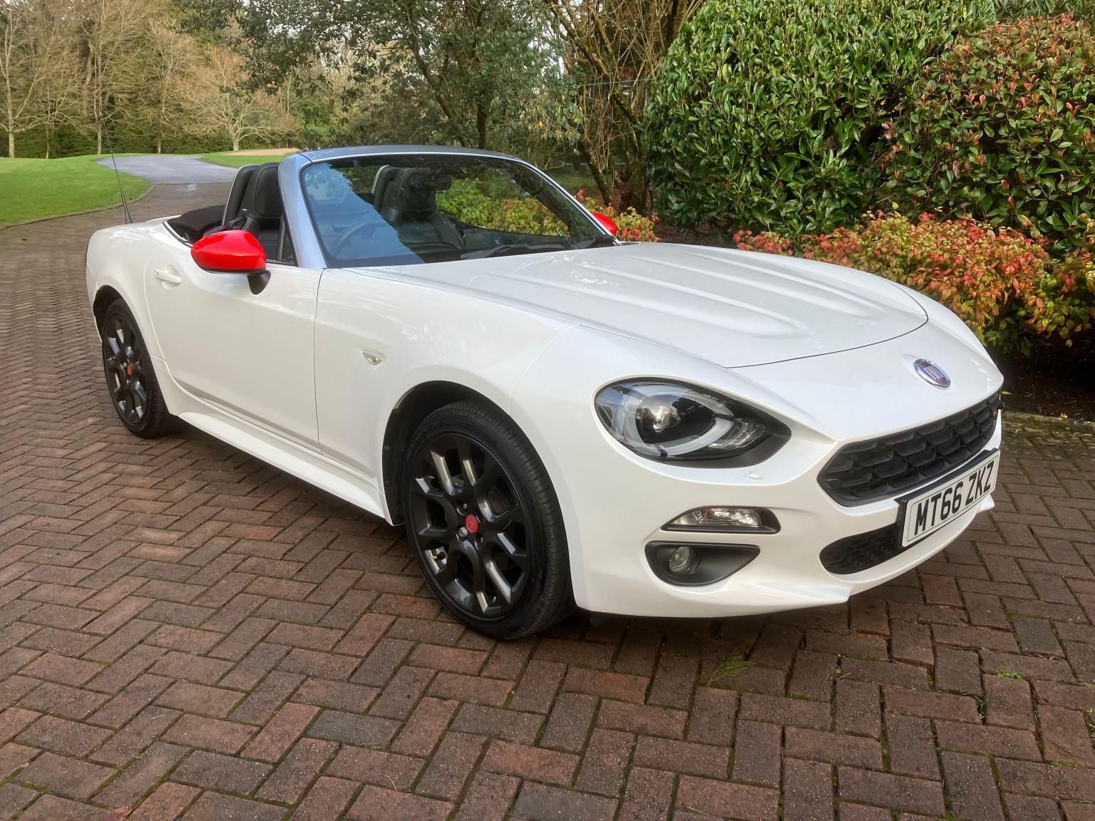 Pearlescent White with Black leather ,Charcoal alloys and Black hood. Only 31000 mls from new with full service history. Superb specification of this top of the range Lusso Plus model includes: Charcoal Abarth alloys, Abarth Red mirror covers, Auto Climate control,Rear view Camera,Rear parking sensors,Heated seats,Keylees Go/Entry,LED Adaptive Headlights with washers,Bose 9 speaker audio system, Navigation,Bluetooth, DAB Radio and customised hood cover. A beautiful low mileage example in outstanding condition for its year!