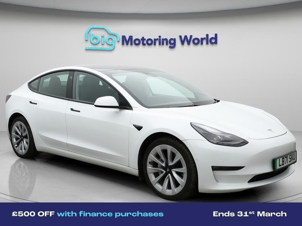 £500 towards your finance depo-Our Tesla Model 3 is finished in White. Specification includes a range of fantastic features including £500 towards your finance deposit, All Wheel Drive, Leather Seats, Adaptive Cruise Control, Satellite Navigation, Heated Seats, Wireless Phone Charging, Rear View Camera, Heated Rear Seats, Heated Steering Wheel Specification information is supplied by CAPHPI and may vary to the actual car. This data does not form any part of a buying contact. Please check specification prior to purchase in-store. The MOT is valid until December 2026, visit bigmotoringworld.co.uk for more photos, a 360 tour, service history and a free HPI report.Were BIG on peace of mind and this White Tesla Model 3 has completed our comprehensive 200 point inspection and passed all checks. Its ready for you to drive away with immediate collection in-store. We include a 90-day warranty as standard plus an option to extend for up to 3 years.Reserve this car exclusively for you, safely and securely at bigmotoringworld.co.uk, with a fully refundable £99 deposit. Test drive before you buy, with no commitment, no hassle and a completely haggle free experience. Still searching and want to see thousands more cars? We are BIG on choice with over 8000 cars to choose from.Visit our award winning web site bigmotoringworld.co.uk.Were Big Motoring World and were BIG on what matters to you.