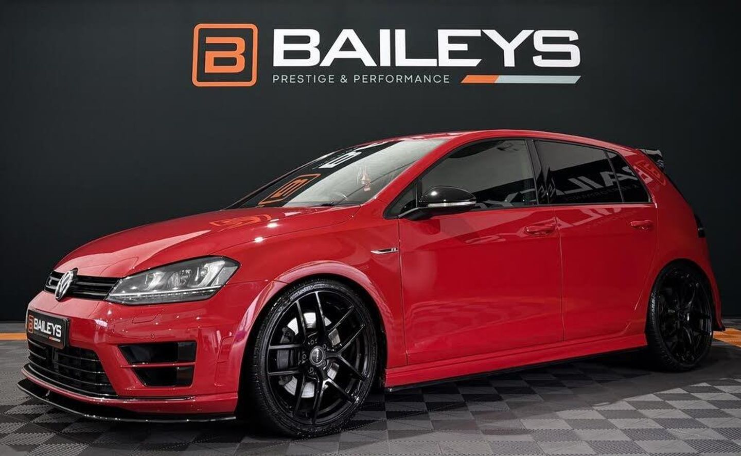 Black interior.FOR SALE 2015(64) Volkswagen Golf R finished in stunning Tornado Red, 2.0L Turbo, Hatchback 5dr Petrol DSG 4Motion Euro 6, 81k miles, Great service history, Stunning example - Priced to sell at £14,795 81,717 miles backed by DVSA MOT Expiry - Will come with 12 months MOT Great service history, Stunning Example, Fully HPI clear Just arrived here at Baileys Prestige & Performance is this beautiful Volkswagen Golf R finished in stunning Tornado Red. This Golf R comes with the powerful 2.0 Litre Turbo petrol engine paired with the great DSG gearbox, delivering a very respectable 300BHP and offering great handling. A fantastic choice for those seeking style and performance with that rally heritage. This 2015 model is in great condition overall for the age of the car. This car gets a hell of a lot of attention and really does look incredible! we are sure this will not hang around for long. The exterior bodywork is in very good condition and has clearly been looked after, presenting superbly inside and out. Fully HPI clear with report to come with the car. A genuinely great example that drives perfectly and stands out from the crowd. Sounds absolutely incredible we have no proof of any mapping or former maps so we have to assume this car is running stock power at 300BHP! Don't miss out on the opportunity to own this stunning car with its impressive features and affordable price of £14,795! Service history is great having had 12 services and previous service at 81k miles carried out with ourselves here at Baileys. We have also just carried out a full service & health check ready for the new owner to enjoy for years to come. FULL SPEC Apple CarPlay Adaptive Cruise Control Front Assist Front and rear parking sensors Auto Lights pack Power Mirrors 19 Romac Diablo wheels in showroom condition Triple R Composites front splitter KSB Side skirts and spats Valance style rear spoiler Maxton Design diffuser Custom made res delete Audi S3 backbox with 4tips 5% limo tints on rear 25mm Racingline lowering springs SERVICE HISTORY 22/02/2016 - Service at 19,052 miles 24/03/2017 - Service at 33,854 miles 26/02/2018 - Service at 37,362 miles 01/02/2019 - Service at 40,066 miles 03/02/2020- Service at 43,574 miles 03/02/2021 - Service at 45,671 miles 04/02/2022 - Service at 48,931 miles 06/02/2023 - Service at 53,041 miles 18/08/2024 - Service at 65,546 miles 02/02/2025 - Service at 71,583 miles 31/07/ 2025 - Service at 77,620 miles 16/01/2026 - Service at 81,600 miles Absolutely great example which has been priced fairly at £14,795 Contact us for further information or to book a viewing/test drive. Finance and extended warranties available ** Here at Baileys Prestige & Performance