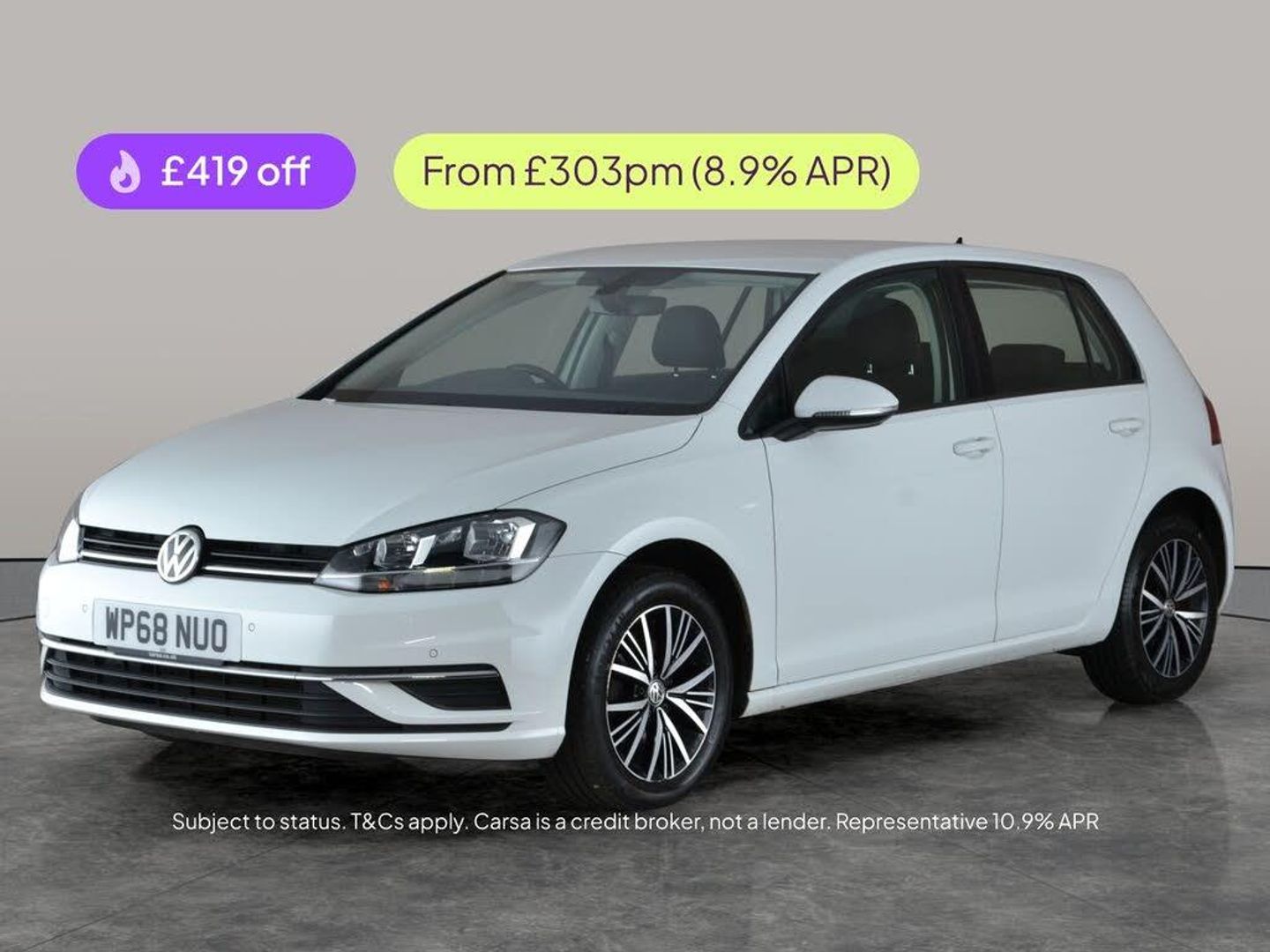 Experience the Volkswagen Golf SE Nav, a smart white hatchback with sleek 17in alloy wheels and dynamic paddle shift controls for a truly engaging drive. Enjoy clever tech like Adaptive Cruise Control, Discover Navigation, Apple CarPlay, and Car-Net App-Connect. Stay safe and confident with LED headlights and front & rear parking sensors. With both air conditioning and climate control, every journey is tailored for comfort. Discover the style and versatility of this premium automatic petrol hatchback today. 6 services recorded, last serviced on 15/01/2026 at 50,311 miles. MOT to 16/01/2027. Visit our website for service history, online valuation, full vehicle specification plus multiple images. Any feature/option specified here is from 3rd party data. We cannot guarantee the accuracy of any specification supplied by a 3rd party. We recommend that you physically check the specification of the vehicle on site prior to purchase. This information does not form part of the buying contract. Terms & Conditions apply. We have over 2,000 cars available from our 10 national branches, check our website to see all our stock. Our Trustpilot rating is 4.4/5 with over 9,000 reviews.