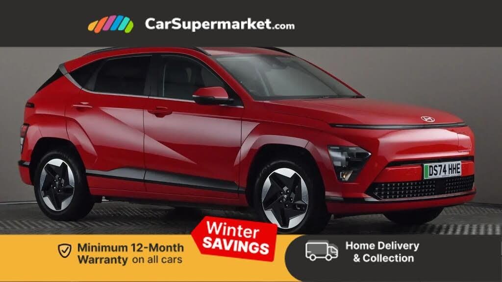 12.3" touchscreen centre console display satellite navigation with bluelink, live services and mapcare,Bluetooth connectivity with voice recognition,Driver status monitor (DSM),Driver supervision instrument cluster with 12.3" LCD display,eCall emergency call system,Feature on demand - Enabled,Forward collision avoidance assist (FCA 1.5) - Car,pededstrian,cycle and junction turning,Front parking sensor,HDA - Highway Drive Assist Level 1.5,Intelligent speed limit assist,Lane follow assist,Lane keep assist,Leading vehicle departure alert (LVDA),Parking system with rear camera and guidance system,PAS,Rear parking sensor,Roadside assistance,Smart cruise control with stop and go functionality,Wireless Smartphone Integration includes Apple CarPlay and Android auto,Charging cable - 7 pin type 2,Emergency 3 pin connector charging cable (ICCB),2 front USB C and 2 rear USB C charging points,DAB Digital radio,Speakers - Front,rear and tweeters,Steering wheel audio,phone and cruise controls,Acoustic film + solar windscreen,Auto dimming rear view mirror,Automatic headlights with dusk sensor,Automatic windscreen wipers with rain sensor,Body colour exterior door handles,Body coloured door mirrors,Body coloured wheel arch inserts,Door mirror LED indicator lights,Electric front windows with anti-trap mechanism and one touch control,Electric rear windows,Electrically adjustable and heated door mirrors,Frunk - under the bonnet storage,Full LED MFR headlights,LED daytime running lights,LED upper and lower rear lights,Power folding door mirrors,Rear roof spoiler with integrated LED brake light,Rear side wing doors,Rear wiper,Roof rails,Satin finished beltline,Tinted glass in front and rear doors,V2L (Vehicle to Load) - Inside,Windscreen auto defog function,12V power outlet in front console,2 zone climate control,3 seat bench in 2nd row,Adjustable head restraints,Cloth upholstery,Driver and passenger front seat pockets,Driver's seat lumbar support,Driver/passenger manual seat height adjustment,Driver/passenger sunvisors and illuminated vanity mirrors,Front cupholder,Heat pump,Height/reach adjustable steering column,Isofix rear child seat fastenings,Leather wrapped steering wheel,LED centre interior light,LED front interior light,Luggage compartment LED lighting,Luggage shelf,Metal paint effect interior door handles,Rear centre armrest with cupholders,Shift by wire SBW,Single front passenger seat,Vertical adjustment rear head restraints,Trailer wiring package - Kona,Airbag - front,front side,curtain and centre front airbag,Anti-lock brake system (ABS),Downhill brake control,Electric parking brake,Electronic stability control,Fixed 3 point for second row centre passenger seatbelt,Hill start assist control (HAC),Manual child lock in rear doors,Rear seat alert,Tyre pressure monitoring system,Alarm/immobiliser,Rear occupant alert,Remote central locking,Smart key with keyless entry and start/stop button,Five year annual vehicle health checks,17" Alloy wheels,Temporary mobility kit (TMK),Comfort Pack,Engine Red