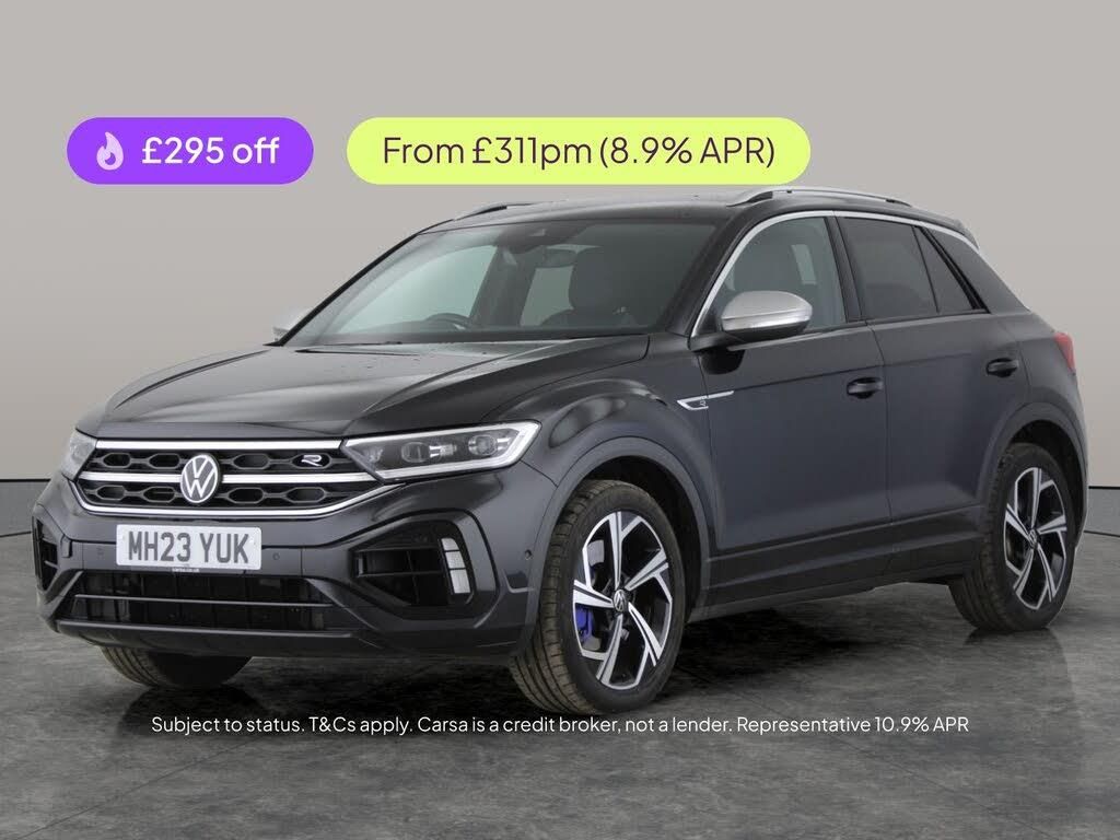 Experience the thrill of the Volkswagen T-Roc R, a stylish black SUV packed with cutting-edge features. Enjoy seamless access with Keyless Entry, stay connected via Apple CarPlay and Wifi, and let Sat Nav guide the way. The Digital Cockpit Pro delivers a high-tech driving experience, while Adaptive Cruise Control and Park Assist make every journey effortless. Relax in comfort with Dual Zone Digital Climate Control and premium 18in alloy wheels that complete its sporty look. This T-Roc is ready to impress. MOT to 31/08/2026. Visit our website for service history, online valuation, full vehicle specification plus multiple images. This vehicle is VAT qualifying. Any feature/option specified here is from 3rd party data. We cannot guarantee the accuracy of any specification supplied by a 3rd party. We recommend that you physically check the specification of the vehicle on site prior to purchase. This information does not form part of the buying contract. Terms & Conditions apply. We have over 2,000 cars available from our 10 national branches, check our website to see all our stock. Our Trustpilot rating is 4.4/5 with over 9,000 reviews.