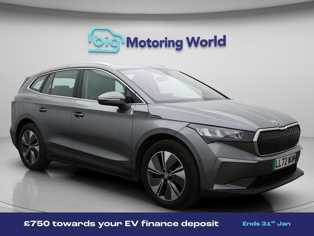 £750 towards your finance depo-Our Skoda Enyaq is finished in Grey. Specification includes a range of fantastic features including £750 towards your finance deposit, Digital Cockpit, Lane Assist, Cooled Glovebox, Gesture Control, Virtual Cockpit, Rear View Camera, Bluetooth, Parking Sensors, Ambient Lighting Specification information is supplied by CAPHPI and may vary to the actual car. This data does not form any part of a buying contact. Please check specification prior to purchase in-store. The MOT is valid until December 2026, visit bigmotoringworld.co.uk for more photos, a 360 tour, service history and a free HPI report.Were BIG on peace of mind and this Grey Skoda Enyaq has completed our comprehensive 200 point inspection and passed all checks. Its ready for you to drive away with immediate collection in-store. We include a 90-day warranty as standard plus an option to extend for up to 3 years.Reserve this car exclusively for you, safely and securely at bigmotoringworld.co.uk, with a fully refundable £99 deposit. Test drive before you buy, with no commitment, no hassle and a completely haggle free experience. Still searching and want to see thousands more cars? We are BIG on choice with over 8000 cars to choose from.Visit our award winning web site bigmotoringworld.co.uk.Were Big Motoring World and were BIG on what matters to you.