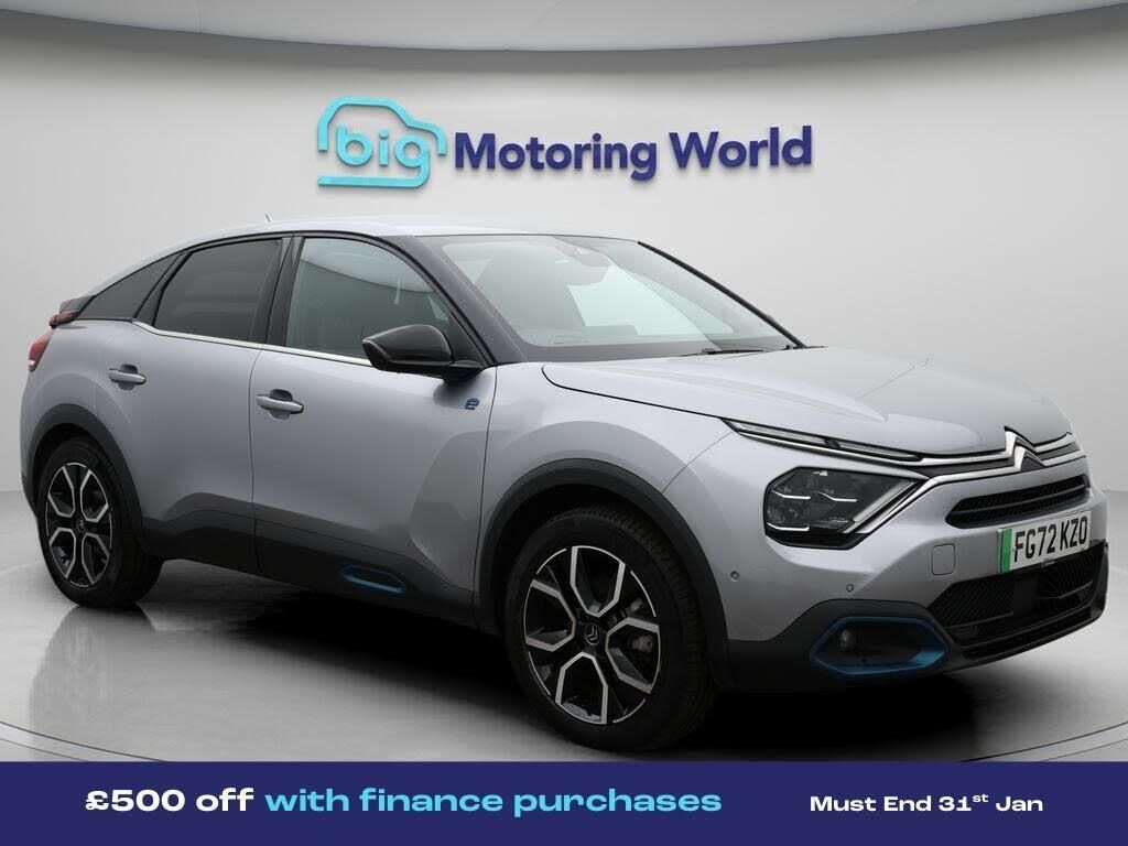 £500 towards your finance depo-Our Citroen e-C4 is finished in Grey. Specification includes a range of fantastic features including £500 towards your finance deposit, Head up Display, 18'' alloy wheels, Leather Seats, Apple CarPlay, Android Auto, Satellite Navigation, Privacy Glass, Heated Seats, Rear View Camera Specification information is supplied by CAPHPI and may vary to the actual car. This data does not form any part of a buying contact. Please check specification prior to purchase in-store. The MOT is valid until September 2026, visit bigmotoringworld.co.uk for more photos, a 360 tour, service history and a free HPI report.Were BIG on peace of mind and this Grey Citroen e-C4 has completed our comprehensive 200 point inspection and passed all checks. Its ready for you to drive away with immediate collection in-store. We include a 90-day warranty as standard plus an option to extend for up to 3 years.Reserve this car exclusively for you, safely and securely at bigmotoringworld.co.uk, with a fully refundable £99 deposit. Test drive before you buy, with no commitment, no hassle and a completely haggle free experience. Still searching and want to see thousands more cars? We are BIG on choice with over 8000 cars to choose from.Visit our award winning web site bigmotoringworld.co.uk.Were Big Motoring World and were BIG on what matters to you.