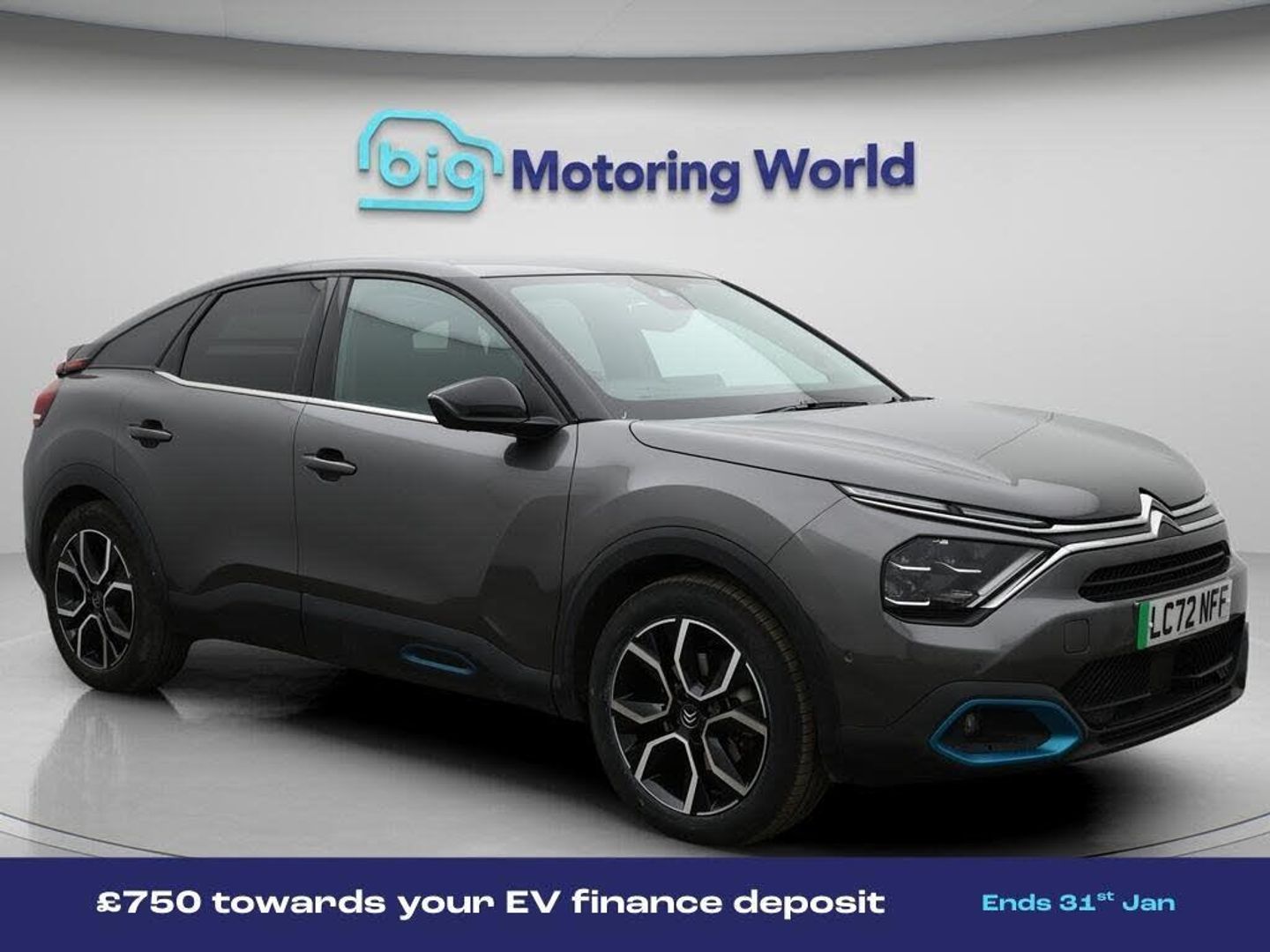 £750 towards your finance depo-Our Citroen e-C4 is finished in Grey. Specification includes a range of fantastic features including £750 towards your finance deposit, Head up Display, 18'' alloy wheels, Leather Seats, Satellite Navigation, Privacy Glass, Heated Seats, Rear View Camera, Heated Steering Wheel, Bluetooth Specification information is supplied by CAPHPI and may vary to the actual car. This data does not form any part of a buying contact. Please check specification prior to purchase in-store. The MOT is valid until November 2026, visit bigmotoringworld.co.uk for more photos, a 360 tour, service history and a free HPI report.Were BIG on peace of mind and this Grey Citroen e-C4 has completed our comprehensive 200 point inspection and passed all checks. Its ready for you to drive away with immediate collection in-store. We include a 90-day warranty as standard plus an option to extend for up to 3 years.Reserve this car exclusively for you, safely and securely at bigmotoringworld.co.uk, with a fully refundable £99 deposit. Test drive before you buy, with no commitment, no hassle and a completely haggle free experience. Still searching and want to see thousands more cars? We are BIG on choice with over 8000 cars to choose from.Visit our award winning web site bigmotoringworld.co.uk.Were Big Motoring World and were BIG on what matters to you.