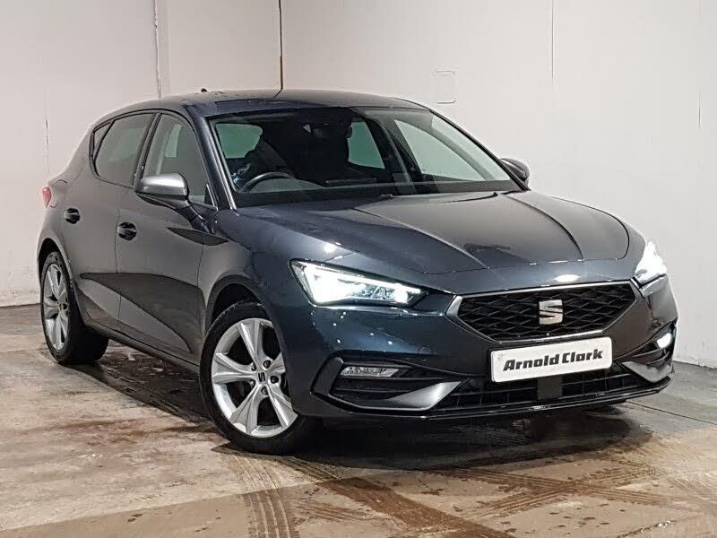 Media system plus with navigation - Leon, Full link smartphone integration with Mirror Link, wireless Apple CarPlay and wired Google Android Auto, Front assist with forward collision warning braking reaction to vehicles, pedestrians and cyclists, Digital cockpit, E-call, Lane assist, Park assist (inc front/rear parking sensors), Power assisted speed sensitive electro-mechanical steering, RPM, trip computer, outside temp gauge, instrument light brightness, low fuel warning light, lights on reminder, gearshift indicator, SEAT drive profile with 4 modes (Eco/Normal/Sport/Individual), throttle response, Service interval indicator, Start/stop system with regenerative braking, Auxiliary input socket, LED front fog lamps with cornering function, LED headlights and tail lights with dynamic turn signals, welcome light silhouette from exterior mirrors and dynamic headlight range control, Rain sensing wipers, Separate daytime running light with automatic headlight control and coming home feature, 60/40 split rear bench seat with armrest, Dust/pollen filter, ISOFIX points in outer rear seats with top tether anchorage points, Height/reach adjust steering wheel, Three zone climate control, 17" Dynamic Bi-spoke alloy wheels with 91W tyres
