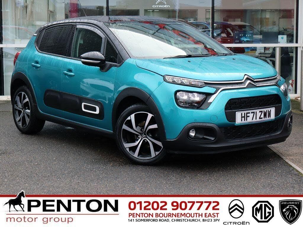 LOW MILEAGE, NEWER SHAPE, NEWER 71 REG, TOP SHINE PLUS SPEC in 6 SPEED AUTO with the HIGHER BHP 1.2 PureTech 110 hp PETROL ENGINE, NEW SHAPE with UPDATED FRONT and AIRBUMPS plus ADVANCED COMFORT SEATS and REDESIGNED INTERIOR, SATELLITE NAVIGATION, TOUCHSCREEN with APPLE CARPLAY and ANDROID AUTO, REVERSING CAMERA, LED HEADLIGHTS, CLIMATE CONTROL, CRUISE CONTROL, TECHWOOD HALF LEATHER AMBIENCE with ADVANCED COMFORT SEATS, NEW STYLE 17in VECTOR ALLOYS, FANTASTIC SERVICE HISTORY, LOOKS VERY SMART in SPRING BLUE METALLIC with NERA BLACK BI-TONE ROOF, CITROEN MAIN DEALER, ASK ABOUT OUR 3 YEAR PENTON SERVICE PLAN NOW ONLY £699, We have a team of buyers who work very hard to make sure we have the most desirable vehicles in great condition and at the best prices as a result we sell cars to people all over the country, We're a Main Dealer Group in business for over 30 years who are serious about used cars with over 250 physical all make used cars on each site so you can trust all cars are prepared to MAIN DEALER STANDARDS, This vehicle is HPI CLEAR and a FULLY CHECKED Penton Motor Group Approved Used Car. All of our cars are Finance Clear and we never sell write offs, Most cars will be ready to DRIVE AWAY TODAY with 7 Days Free Driveaway Insurance. Finance Available. ALL PART EXCHANGES WELCOME. Warranty Included. Penton Citroen THE BIG Citroen Dealer. Citroen C3 instock incl Feel. Flair. Flair Nav. Flair Plus. Origins. Elle. Saint James. C-Series. Sense. Shine. Shine Plus. Some with. Sat Nav. Leather. Diesel. Auto. ETG. Manual & EGS.