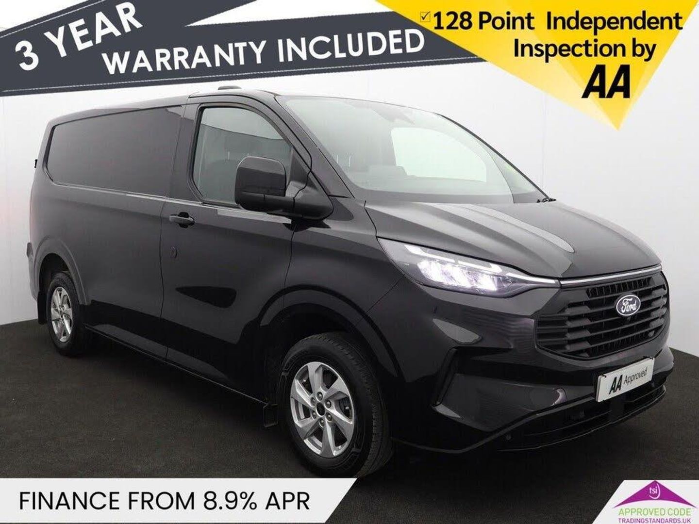 13in Touchscreen, 5G Embedded Modem, Rear USB Port, SYNC 4, 16in Alloy Wheels - Sparkle Silver, Body Colour Rear Bumper, Body Coloured Exterior Mirror Finish, Bodyside Mouldings - Body Colour, Bumper - Body Colour Front Bumper, Door Handles - Body Colour, Dual Power Mirrors - Auto-Power Fold and Heated, Electric Windows - Power Front with Driver-Passenger One-Touch, Ford Easy Fuel System, Front Splash Guard, Front Windshield Defroster - Quick Clear, Rear Splash Guards, Tinted Glass Complete, Automatic Air Conditioner, Bottle Holder - Twin 2 litre Bottle Capacity - Facia-Mounted, Comfort Dual Passenger Seat Pack, Courtesy Light, Full Height Polypro Interior Trim Panels, Full Metal Bulkhead, Headlining - Cab - Moulded, Hinged Rear Cargo Door, Interior Grab Handle with Drivers Sunglasses Holder, Interior LED Lights, Kerbside Side Load Door, LAC - Load Adaptive Control, Load Compartment - Tie Down Loops x6, Lockable Glovebox, Moulded Load Floor Liner, Sensico Gear Shift Knob, Sensico Steering Wheel, Steering Column - Rake and Reach Adjustment, Storage - Drivers Side Storage Compartment on Facia Top, Storage - Front Door Map Pockets, Storage - Underseat Stowage Compartment, Super Bright Load Compartment Lights, Agate Black, Automatic Headlights with Rain Sensing Wipers, Daytime Running Lamps, Fixed DSS LED Headlamps with Auto High Headlamps, Power Assisted Steering, ABS - Anti-lock Braking System, AECS NO SMS - Roll Detect 2G, Alcohol Interlock, Drivers Airbag, EBA - Emergency Brake Assist, EBD - Electronic Brakeforce Distribution, Emergency Brake Light Flashing, Engine Immobiliser, ESC - Electronic Stability Programme, Front Seat Belts with Pre-Tensioners, Hill Start Assist, HLA - Hill Launch Assist, Inclination Anti-Theft Sensor, Keyless Entry, Mechanical Parking Brake, Passenger Airbag, Power Door Deadlocks - Double Locking, Regular Van Standard Unlocking, Reversing Camera Pack - DAT Pack 2, RSC - Roll Stability Control, Seat Belts - 3-Point Diagonal Inertia Reel - All Seats, Thatcham Category 1 Alarm, Traction Control - TC, Trailer Sway Control, Trip Computer, Tyre Pressure Monitoring System - TPMS, Washer Tank Level Warn Lamp