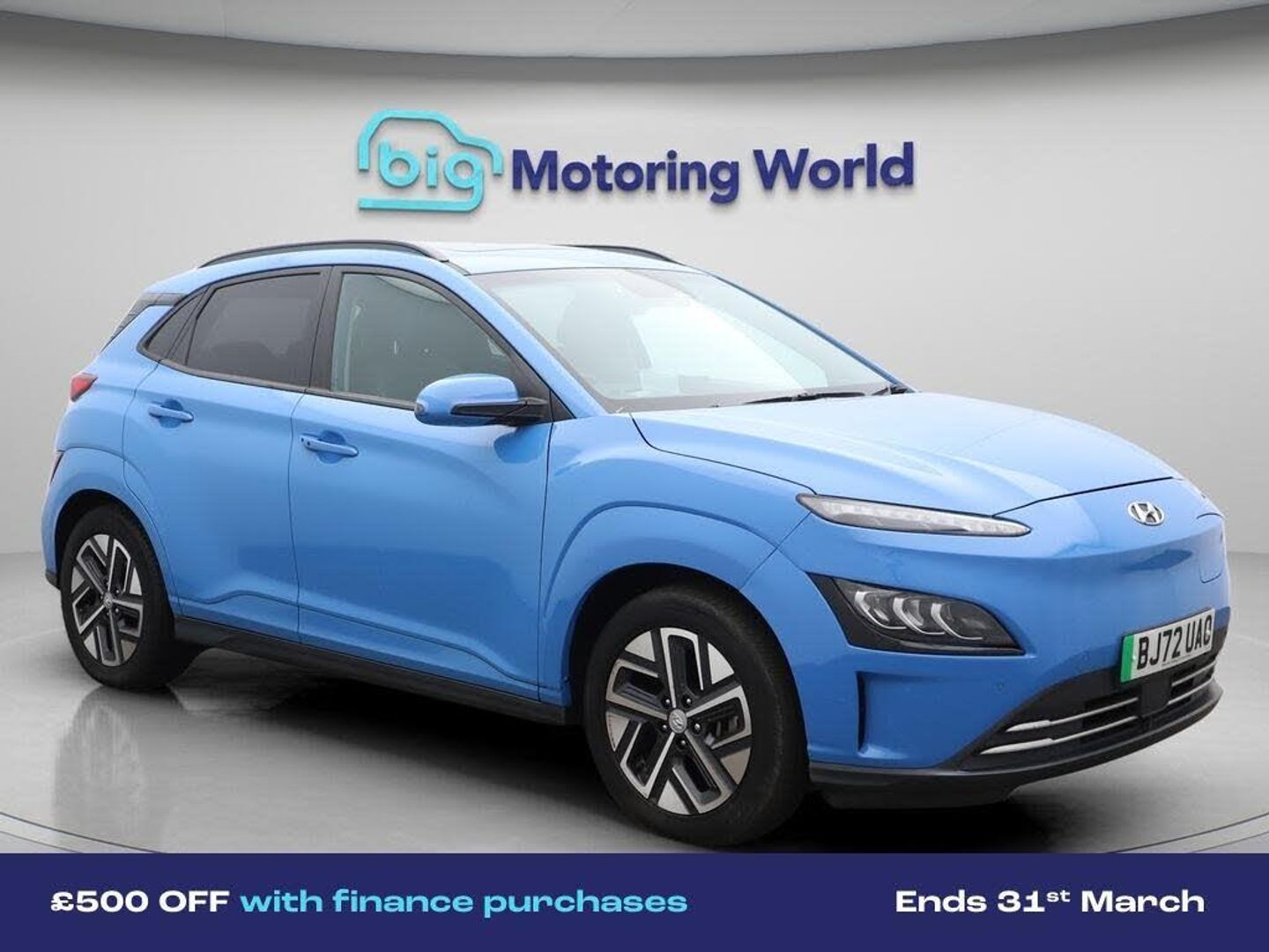 £500 towards your finance depo-Our Hyundai KONA comes with optional extras worth £565. Specification includes a range of fantastic features including £500 towards your finance deposit, Head up Display, 17'' Alloy Wheels, Leather Seats, Apple CarPlay, Adaptive Cruise Control, Lane Assist, Android Auto, Satellite Navigation, Privacy Glass Specification information is supplied by CAPHPI and may vary to the actual car. This data does not form any part of a buying contact. Please check specification prior to purchase in-store. The MOT is valid until October 2026, visit bigmotoringworld.co.uk for more photos, a 360 tour, service history and a free HPI report.Were BIG on peace of mind and this Blue Hyundai KONA has completed our comprehensive 200 point inspection and passed all checks. Its ready for you to drive away with immediate collection in-store. We include a 90-day warranty as standard plus an option to extend for up to 3 years.Reserve this car exclusively for you, safely and securely at bigmotoringworld.co.uk, with a fully refundable £99 deposit. Test drive before you buy, with no commitment, no hassle and a completely haggle free experience. Still searching and want to see thousands more cars? We are BIG on choice with over 8000 cars to choose from.Visit our award winning web site bigmotoringworld.co.uk.Were Big Motoring World and were BIG on what matters to you.