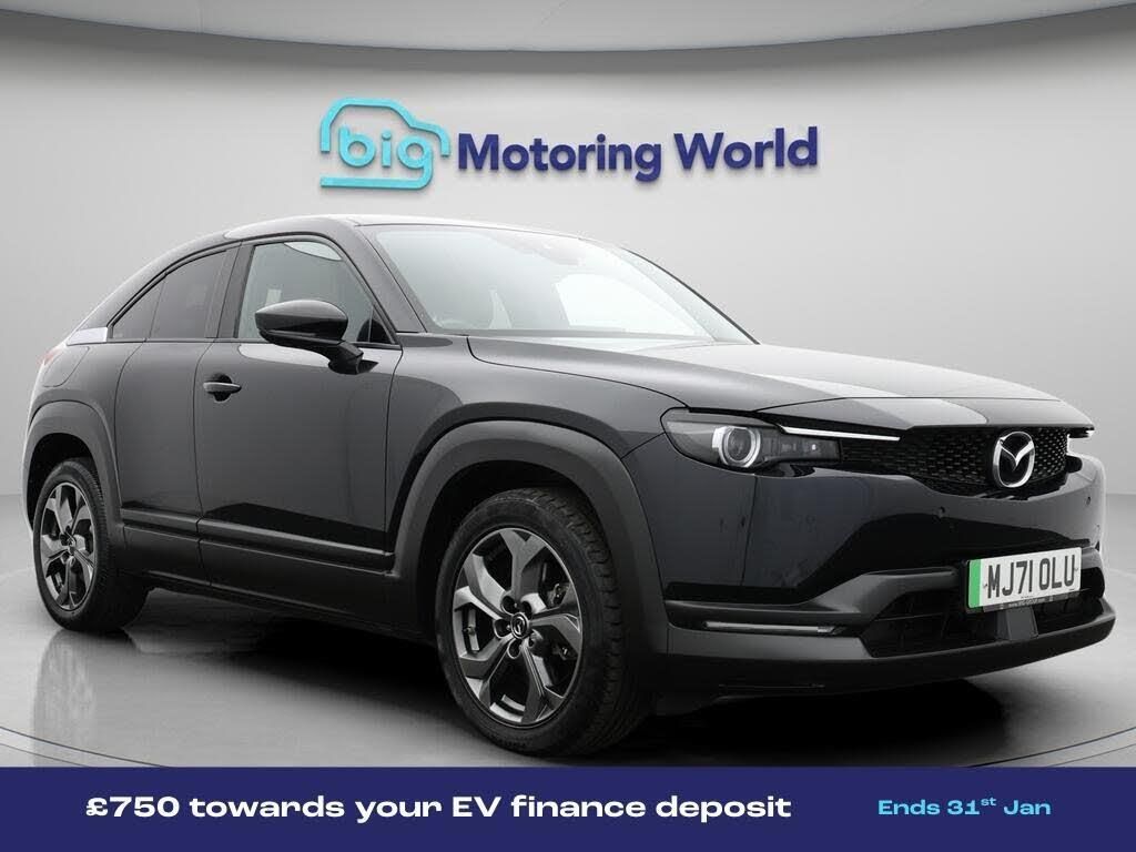 £750 towards your finance depo-Our Mazda MX-30 is finished in Black. Specification includes a range of fantastic features including £750 towards your finance deposit, Panoramic Roof, Head up Display, 18'' alloy wheels, Part Leather Seats, Adaptive Cruise Control, Privacy Glass, Heated Seats, Rear View Camera, Heated Steering Wheel Specification information is supplied by CAPHPI and may vary to the actual car. This data does not form any part of a buying contact. Please check specification prior to purchase in-store. The MOT is valid until November 2026, visit bigmotoringworld.co.uk for more photos, a 360 tour, service history and a free HPI report.Were BIG on peace of mind and this Black Mazda MX-30 has completed our comprehensive 200 point inspection and passed all checks. Its ready for you to drive away with immediate collection in-store. We include a 90-day warranty as standard plus an option to extend for up to 3 years.Reserve this car exclusively for you, safely and securely at bigmotoringworld.co.uk, with a fully refundable £99 deposit. Test drive before you buy, with no commitment, no hassle and a completely haggle free experience. Still searching and want to see thousands more cars? We are BIG on choice with over 8000 cars to choose from.Visit our award winning web site bigmotoringworld.co.uk.Were Big Motoring World and were BIG on what matters to you.