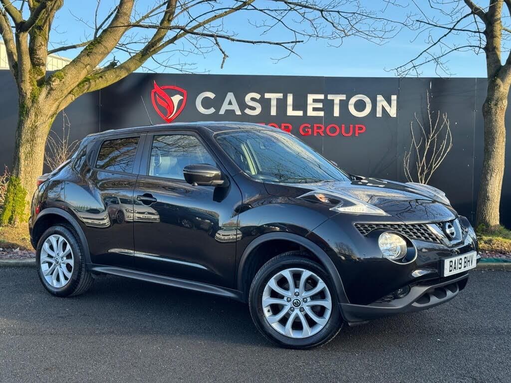 HPI CLEAR , 2 X KEYS , FULL SERVICE HISTORY AND IN SUPERB CONDITION THROUGHOUT- 2019 NISSAN JUKE 1.6 PETROL TEKNA FINISHED IN METALLIC BLACK PAINT OVER A PREMIUM HEATED BLACK LEATHER INTERIOR - EXCELLENT SPECIFICATION MODEL WITH MULTI SPOKE ALLOY WHEELS , TEKNA BODY APPEARANCE , LED LIGHTS , 360o CAMERAS PLUS REVERSING CAMERA , 5 SPEED MANUAL GEARBOX WITH CRUISE CONTROL , TRACTION CONTROL & STOP / START TECHNOLOGY , LEATHER TRIMMED MULTIFUNCTION STEERING WHEEL , 4 X ELECTRIC WINDOWS WITH GLOBAL FACILITY , HEATED POWER FOLDING WING MIRRORS AND A PREMIUM INFOTAINMENT CENTRE WITH SATELLITE NAVIGATION , BLUETOOTH TELEPHONE , DAB DIGITAL RADIO AND ALL SMARTPHONE HOOKUPS WITH BLUETOOTH AUDIO STREAMING - EXCELLENT PERFORMANCE & FUEL ECONOMY , A SENSIBLE INSURANCE GROUP & ROAD TAX BRACKET PLUS ''EURO 6'' STATUS SO EXEMPT FROM ALL EMISSION CONTROLLED ZONES NATIONWIDE - SUPPLIED WITH A FULL ENGINE SERVICE AND PRE-DELIVERY INSPECTION , 12 MONTHS MOT WITH ANY ADVISORIES CORRECTED , AN UP TO DATE SERVICE HISTORY RECORD AND A 6 MONTH ''PLATINUM LEVEL'' NATIONWIDE WARRANTY-2 KEYS|FSH|360 CAM|SATNAV|LTHR-DEBIT CARDS ACCEPTED, FINANCE & PART EX, HPI/VOSA VERIFIED, 100 POUND DEPOSIT TO SECURE ANY VEHICLE