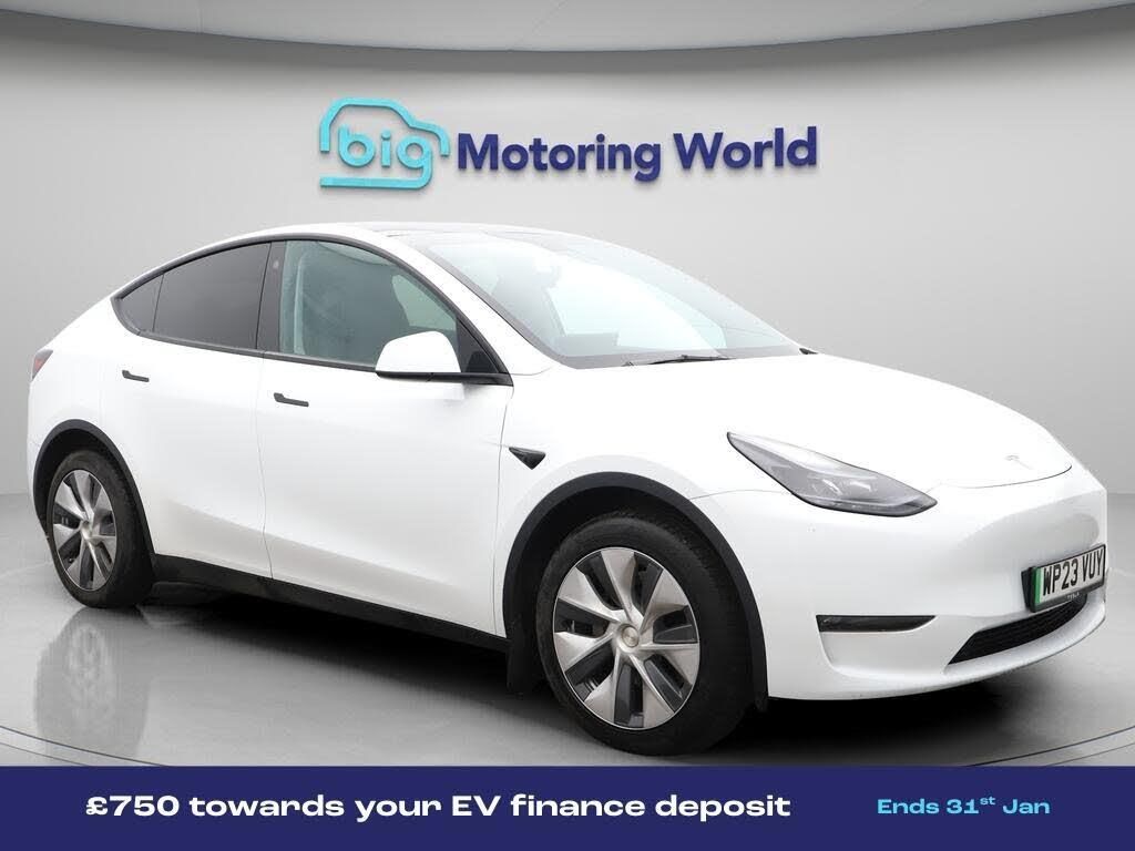 £750 towards your finance depo-Our Tesla Model Y is finished in White. Specification includes a range of fantastic features including £750 towards your finance deposit, All Wheel Drive, Panoramic Roof, Leather Seats, Satellite Navigation, Privacy Glass, Heated Seats, Wireless Phone Charging, Rear View Camera, Heated Rear Seats Specification information is supplied by CAPHPI and may vary to the actual car. This data does not form any part of a buying contact. Please check specification prior to purchase in-store. The MOT is valid until January 2027, visit bigmotoringworld.co.uk for more photos, a 360 tour, service history and a free HPI report.Were BIG on peace of mind and this White Tesla Model Y has completed our comprehensive 200 point inspection and passed all checks. Its ready for you to drive away with immediate collection in-store. We include a 90-day warranty as standard plus an option to extend for up to 3 years.Reserve this car exclusively for you, safely and securely at bigmotoringworld.co.uk, with a fully refundable £99 deposit. Test drive before you buy, with no commitment, no hassle and a completely haggle free experience. Still searching and want to see thousands more cars? We are BIG on choice with over 8000 cars to choose from.Visit our award winning web site bigmotoringworld.co.uk.Were Big Motoring World and were BIG on what matters to you.