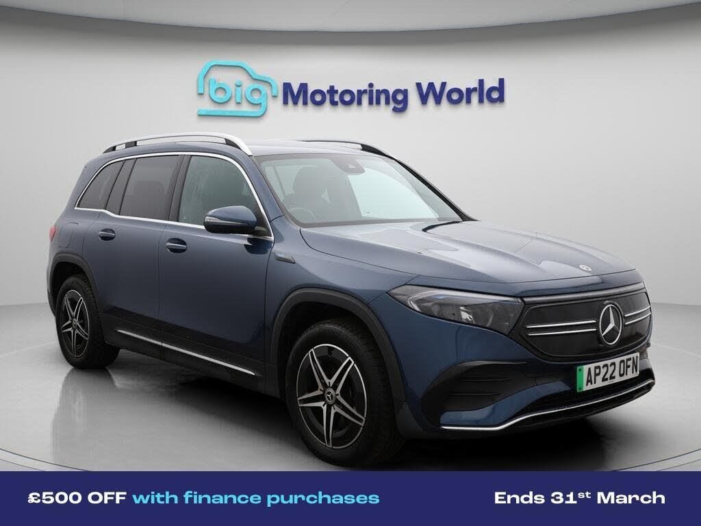 £500 towards your finance depo-Our Mercedes-Benz EQB is finished in Blue. Specification includes a range of fantastic features including £500 towards your finance deposit, Comfort Pack, Third Row Seats, All Wheel Drive, 18'' alloy wheels, Part Leather Seats, Apple CarPlay, AMG body styling, Parking Pack, Android Auto Specification information is supplied by CAPHPI and may vary to the actual car. This data does not form any part of a buying contact. Please check specification prior to purchase in-store. The MOT is valid until August 2026, visit bigmotoringworld.co.uk for more photos, a 360 tour, service history and a free HPI report.Were BIG on peace of mind and this Blue Mercedes-Benz EQB has completed our comprehensive 200 point inspection and passed all checks. Its ready for you to drive away with immediate collection in-store. We include a 90-day warranty as standard plus an option to extend for up to 3 years.Reserve this car exclusively for you, safely and securely at bigmotoringworld.co.uk, with a fully refundable £99 deposit. Test drive before you buy, with no commitment, no hassle and a completely haggle free experience. Still searching and want to see thousands more cars? We are BIG on choice with over 8000 cars to choose from.Visit our award winning web site bigmotoringworld.co.uk.Were Big Motoring World and were BIG on what matters to you.