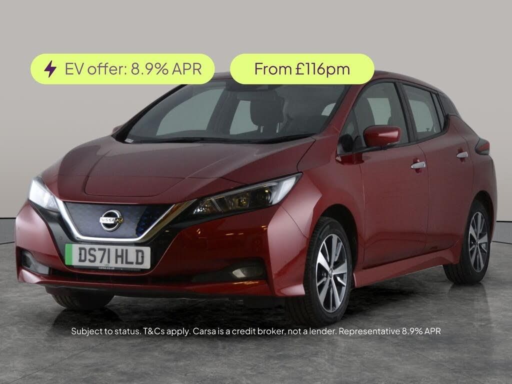 Experience smooth, all-electric driving with this vibrant red Nissan Leaf Hatchback. Enjoy top technology like Apple CarPlay, Sat Nav, and a reversing camera, making every journey easier. Intelligent safety features including Blind Spot Assist, Lane Departure Warning, and Intelligent Lane Intervention keep you secure. Cruise control and keyless start add comfort and convenience. Stay cool with air conditioning and take advantage of the included charging leads. The stylish 16in alloy wheels complete this modern, eco-friendly package. 4 services recorded, last serviced on 17/01/2026 at 36,482 miles. MOT to 14/02/2026. Visit our website for service history, online valuation, full vehicle specification plus multiple images. This vehicle is VAT qualifying. Any feature/option specified here is from 3rd party data. We cannot guarantee the accuracy of any specification supplied by a 3rd party. We recommend that you physically check the specification of the vehicle on site prior to purchase. This information does not form part of the buying contract. Terms & Conditions apply. We have over 2,000 cars available from our 10 national branches, check our website to see all our stock. Our Trustpilot rating is 4.4/5 with over 9,000 reviews.