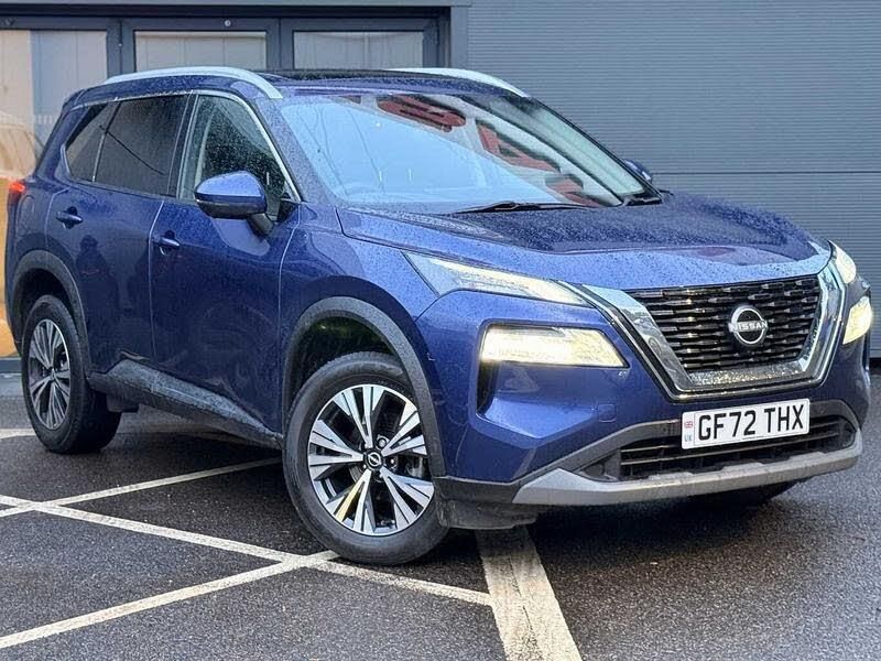 Exterior Features, Metallic paint, Panoramic sunroof, Paint - Metallic, Metallic - Electric blue, Trim - Cloth, Cloth monoform - Black, Exterior Features, Auto rear wiper when reversing, One touch front and rear electric windows with remote opening and closing, Rain sensing wipers, Rear privacy glass, Splash free wipers, Super UV and infrared cut glass, Body coloured door handles, Bodyside mouldings, Chrome side window finisher, Partially body coloured bumpers, Rear roof spoiler, Rear side wing doors, Rear styling plate, Shark fin antenna, 3rd brake light, Follow me home headlights, Headlights auto levelling system, High beam assist, Intelligent auto headlights, LED daytime running lights, LED Headlights, LED rear lights, Rear reversing light (bulb lighting), Three blink turn signal, Safety, ABS with EBD and brake assist, Active brake limited slip, Auto hold function, Electronic parking brake, Hill start assist, Intelligent blind spot intervention, Intelligent front emergency braking with pedestrian, cyclist recognition and junction assist, Intelligent rear automatic braking, Vehicle dynamic control, Blind spot warning, Drive modes (sport, normal, eco), Electric speed sensitive power steering, Front and rear parking sensors, Intelligent around view monitor, Intelligent Cruise control (ICC), Intelligent driver alert system, Intelligent forward collision warning, Intelligent lane departure warning, Intelligent lane intervention, Intelligent lane keep assist, Maximum speed limiter, Moving object detection, Rear cross traffic alert, Rear view camera, Traffic sign recognition with legal speed adjustment, Auto dimming rear view mirror, Body colour mirror caps, Electric auto folding door mirrors, Electrically adjustable and heated door mirrors, 3x3 point rear seatbelt pretensioners + load limiters, Child locks on rear doors, Curtain and front side, far side airbags, Driver and passenger airbags, Driver, passenger and 2nd row rear seat belt reminder, Front seatbelt pretensioners + load limiters, Height adjustable front seatbelts, Tyre pressure monitoring system, Audio / Communications, Android auto/Apple CarPlay (Wired), Wireless apple carplay, Wireless charging pad, 6 speakers, AM/FM audio system with DAB, Bluetooth audio streaming, Front USB connections (Type-A and Type-C), Rear USB charging only ports (Type-A and Type-C), Driver Convenience, Idle stop/start system, Push button starter, Miscellaneous, Emergency and breakdown call, Full Digital 12.3 inch TFT Digital Combimeter, Google maps services - search, weather, 3D maps and Google street view, Nissan connect 12.3 inch touchscreen infotainment system, Nissan connect nav with TomTom traffic, Remote control services - door locks, lights, horn and car locator, Telematics - notifications and connectivity services, TomTom live traffic services, Trip computer, Virtual personal assistant and firmware over the air capability, Interior Features, Dual zone automatic climate control with pollen filter, 12v power socket in dashboard and luggage, Butteryfly console, Chrome interior door handles, Cloth monoform upholstery, Front centre console and armrest, Front cupholders, Front door with bottle holders, Leather shift knob, Leather steering wheel, Luggage board system, Multifunction steering wheel, Rear armrest with 2 cupholders, Rear door bottle holders, Tilt/telescopic adjustable steering wheel, Luggage space lighting, Driver and front passenger sunvisors with illuminated vanity mirrors, Trim, 3 bench rear seats in 2nd row, 3 rear headrests, 60/40 split folding rear seat bench, Driver seat back pocket, Height adjustable driver's seat, Height adjustable front headrests, Height adjustable passenger seat, Passenger seat back pocket, Single front passenger seat, Two rear isofix child seat anchorage points with top tether, Security, Engine immobiliser, Intelligent Key, Remote central door locking with deadlocking, Thatcham Cat.1 alarm, Wheels, 18 inch Diamond cut alloy wheels, Tyre puncture repa