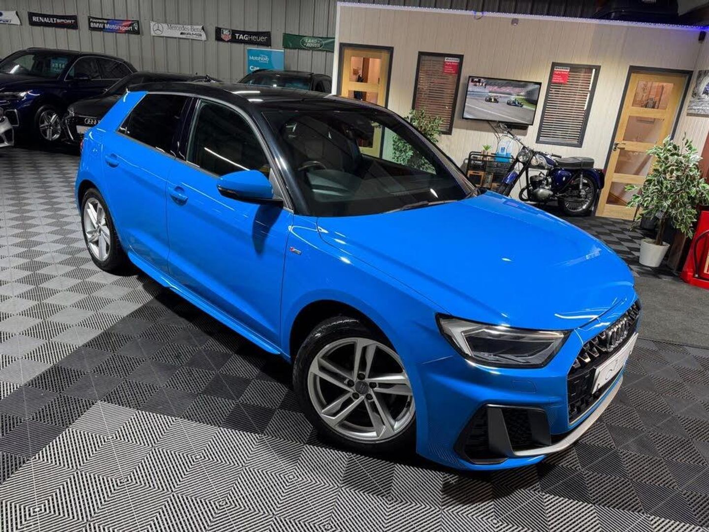**Home delivery available** Full Audi service history, Turbo Blue,.This 2019 Audi A1 TFSI S line offers exceptionally low mileage for its age, having covered just 38,000 miles. This particular model boasts the sporty S line trim and is equipped with a 1.0 litre petrol engine, meeting Euro 6 emission standards. Notable features include a striking Mythos Black metallic contrast roof, rear parking sensors for added convenience, and a Bluetooth interface for seamless connectivity. The car also benefits from a light and rain sensor system, ensuring automatic headlight activation, and advanced LED headlights with dynamic rear indicators for enhanced visibility. The Audi A1 TFSI S line provides a compelling package with several key advantages over similar vehicles. Its low CO2 emissions are a significant benefit, contributing to lower running costs. The acceleration from 0 to 62mph in 10.8 seconds offers responsive performance for everyday driving. Furthermore, this A1 features a surprisingly large boot space, making it practical for shopping trips or weekend getaways, all within a compact and stylish design.