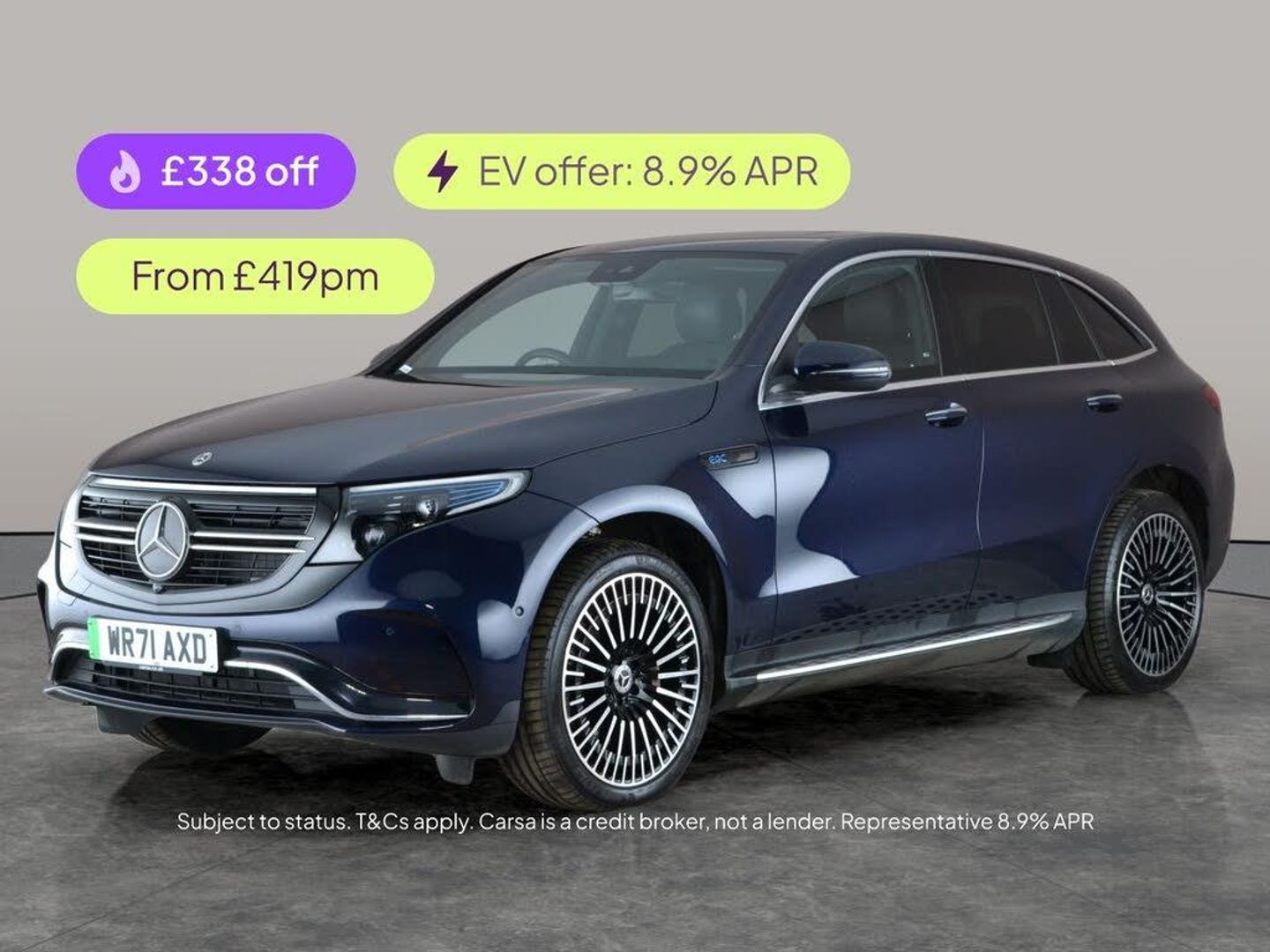 Experience electric luxury with this stunning blue Mercedes-Benz EQC SUV. Enjoy panoramic views through the sunroof, seamless connectivity with Apple CarPlay, and effortless entry with keyless access. Relax in heated leather seats, navigate easily with Sat Nav, and drive with confidence thanks to blind spot assist, lane departure warning, and a reversing camera. LED headlights ensure brilliant visibility, while the Comfort and Mirror packages add extra refinement to your journey. 4 services recorded, last serviced on 14/12/2025 at 32,767 miles. MOT to 22/11/2026. Visit our website for service history, online valuation, full vehicle specification plus multiple images. This vehicle is VAT qualifying. Any feature/option specified here is from 3rd party data. We cannot guarantee the accuracy of any specification supplied by a 3rd party. We recommend that you physically check the specification of the vehicle on site prior to purchase. This information does not form part of the buying contract. Terms & Conditions apply. We have over 2,000 cars available from our 10 national branches, check our website to see all our stock. Our Trustpilot rating is 4.4/5 with over 9,000 reviews.