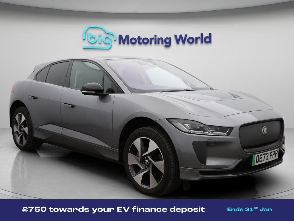 £750 towards your finance depo-Our Jaguar I-PACE is finished in Grey. Specification includes a range of fantastic features including £750 towards your finance deposit, All Wheel Drive, Panoramic Roof, Head up Display, Leather Seats, Apple CarPlay, Meridian Speakers, Lane Assist, Android Auto, Privacy Glass Specification information is supplied by CAPHPI and may vary to the actual car. This data does not form any part of a buying contact. Please check specification prior to purchase in-store. The MOT is valid until October 2026, visit bigmotoringworld.co.uk for more photos, a 360 tour, service history and a free HPI report.Were BIG on peace of mind and this Grey Jaguar I-PACE has completed our comprehensive 200 point inspection and passed all checks. Its ready for you to drive away with immediate collection in-store. We include a 90-day warranty as standard plus an option to extend for up to 3 years.Reserve this car exclusively for you, safely and securely at bigmotoringworld.co.uk, with a fully refundable £99 deposit. Test drive before you buy, with no commitment, no hassle and a completely haggle free experience. Still searching and want to see thousands more cars? We are BIG on choice with over 8000 cars to choose from.Visit our award winning web site bigmotoringworld.co.uk.Were Big Motoring World and were BIG on what matters to you.