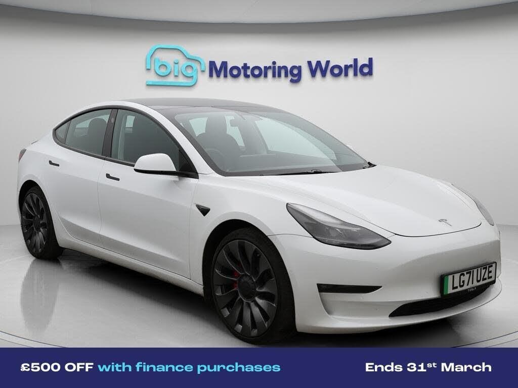 £500 towards your finance depo-Our Tesla Model 3 is finished in White. Specification includes a range of fantastic features including £500 towards your finance deposit, Panoramic Roof, All Wheel Drive, 20'' Alloy Wheels, Leather Seats, Adaptive Cruise Control, Satellite Navigation, Heated Seats, Wireless Phone Charging, Rear View Camera Specification information is supplied by CAPHPI and may vary to the actual car. This data does not form any part of a buying contact. Please check specification prior to purchase in-store. The MOT is valid until September 2026, visit bigmotoringworld.co.uk for more photos, a 360 tour, service history and a free HPI report.Were BIG on peace of mind and this White Tesla Model 3 has completed our comprehensive 200 point inspection and passed all checks. Its ready for you to drive away with immediate collection in-store. We include a 90-day warranty as standard plus an option to extend for up to 3 years.Reserve this car exclusively for you, safely and securely at bigmotoringworld.co.uk, with a fully refundable £99 deposit. Test drive before you buy, with no commitment, no hassle and a completely haggle free experience. Still searching and want to see thousands more cars? We are BIG on choice with over 8000 cars to choose from.Visit our award winning web site bigmotoringworld.co.uk.Were Big Motoring World and were BIG on what matters to you.