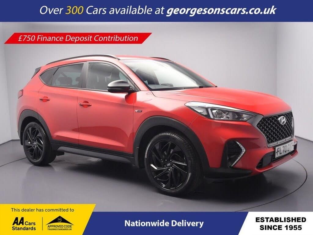 The Hyundai Tucson 1.6 CRDi MHEV N Line combines efficient diesel mild-hybrid performance with a smooth DCT automatic transmission, delivering a refined and responsive SUV driving experience. With four services recorded, this Tucson has been well maintained and is presented in excellent condition, enhanced by the sporty N Line styling. It features a reverse camera and parking sensors for easy manoeuvring, along with Apple CarPlay, Bluetooth, DAB radio and integrated satellite navigation for seamless connectivity. Dual-zone climate control ensures comfort for all occupants, while heated seats and a heated steering wheel provide added warmth in colder conditions. Driver assistance systems include lane assist, hill assist and selectable drive modes, offering added safety and adaptability on every journey. This Tucson N Line blends modern technology, comfort and efficiency in a stylish and practical family SUV. *Minimum Advance £7,500 Georgesons Cars, one of the leading used car dealerships near me, has been serving Liverpool and the wider Merseyside area since 1955. As a third-generation family-run business, we offer a wide variety of cars for sale, including over 300 quality used cars in Liverpool. Whether you're searching for cars for sale in Liverpool or reliable auto used cars, our inventory is price-checked daily, ensuring competitive pricing. Rated 5-stars on TrustPilot, Georgesons Cars proudly upholds the AA dealer promise and Chartered Trading Standards approval. Contact us today to explore our full range of cars for sale and let our team help you find your next car!
