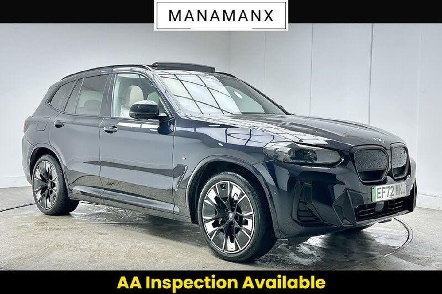 *** EXCELLENT SPEC! *** Manamanx are extremely proud to present this BMW iX3 M Sport Pro presented in Carbon Black with a Oyester with Grey Stitching Vernasca leather interior. Available NOW! Don't Delay, Call Us Today to secure your appointment with one of our dedicated and experienced Sales Advisors! This car has been well cared for and is in excellent condition, with just 20,006 miles on the clock.****** VISIT US TODAY! ****** Discover this 2022 BMW iX3 M Sport Pro. This stunning vehicle is equipped with a wealth of specification below! - LIVE COCKPIT PRO - CONNECTED PACK PRO - BLUETOOTH - DAB RADIO - SATELLITE NAVIGATION ( SAT-NAV ) - HARMAN/KARDON LOUDSPEAKER SYSTEM - ATTENTIVENESS ASSISTANT - HEADS UP DISPLAY ( HUD ) - PARK ASSIST PLUS - REAR VIEW CAMERA - PARKING SENSORS - ELECTRIC FOLD SIDE MIRRORS - M AERODYNAMIC BODYSTYLING - PANORAMIC GLASS SUNROOF ( PAN-ROOF ) - ADAPTIVE LED HEADLIGHTS - HIGH BEAM ASSIST - AIR CONDITIONING - AUTO CLIMATE CONTROL - AMBIENT LIGHTING - POWERED TAILGATE - HEATED SEATS - HEATED STEERING WHEEL - ADAPTIVE SUSPENSION Don't miss out on the chance to own this fantastic car! View the full specification list below and in the extra features section.At Manamanx, we consider all vehicles for part exchange, regardless of age, mileage, or condition. Our team will provide a fair and competitive valuation to make upgrading to your next car as simple and hassle-free as possible.** Please note that cars offered by Manamanx are used cars. These vehicles may therefore have imperfections, commensurate with age and mileage. This is reflected in the advertised price. **