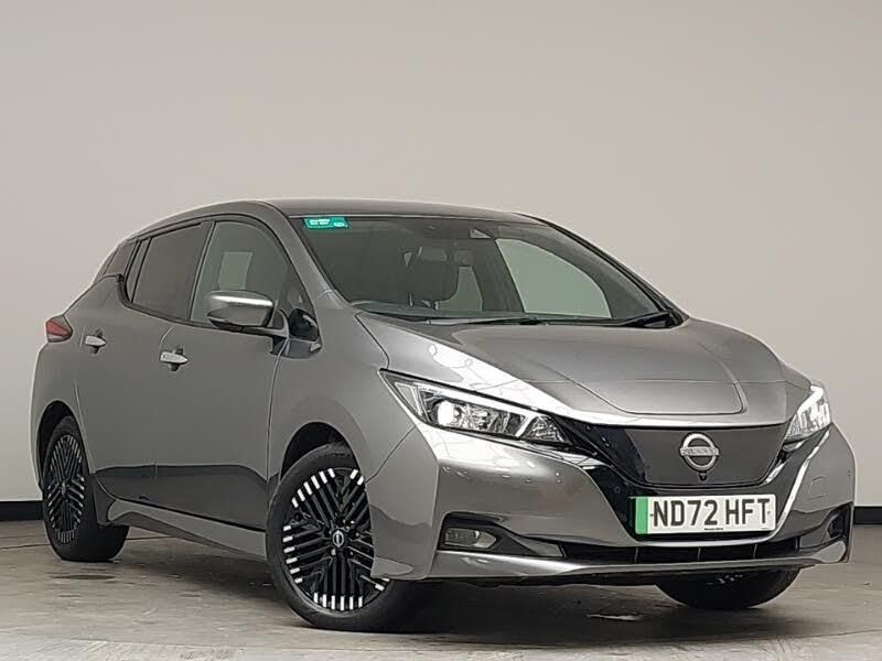 Adaptive cruise control, Android Auto, Apple CarPlay, Heated steering wheel, LED daytime running lights, Rear parking sensor, Speed limiter, 360 degree colour camera view, Apple car play/Android Auto, 7" full colour TFT screen combimeter, 8" colour display with touchscreen, eCall emergency call system, Navigation system with voice control, Nissan connect services app (air conditioning control, cabin heating and charging), Front and rear parking sensors, Intelligent Cruise control (ICC), Lane departure warning system, Hill start assist, 17" Diamond cut black alloy wheels