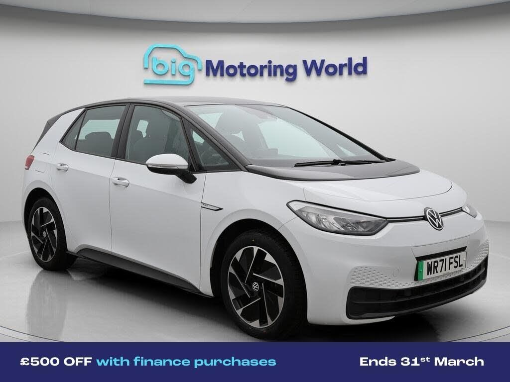 £500 towards your finance depo-Our Volkswagen ID.3 is finished in White. Specification includes a range of fantastic features including £500 towards your finance deposit, Apple CarPlay, Adaptive Cruise Control, Lane Assist, Android Auto, Satellite Navigation, Heated Seats, Heated Steering Wheel, Bluetooth, Blind Spot Assist Specification information is supplied by CAPHPI and may vary to the actual car. This data does not form any part of a buying contact. Please check specification prior to purchase in-store. The MOT is valid until December 2026, visit bigmotoringworld.co.uk for more photos, a 360 tour, service history and a free HPI report.Were BIG on peace of mind and this White Volkswagen ID.3 has completed our comprehensive 200 point inspection and passed all checks. Its ready for you to drive away with immediate collection in-store. We include a 90-day warranty as standard plus an option to extend for up to 3 years.Reserve this car exclusively for you, safely and securely at bigmotoringworld.co.uk, with a fully refundable £99 deposit. Test drive before you buy, with no commitment, no hassle and a completely haggle free experience. Still searching and want to see thousands more cars? We are BIG on choice with over 8000 cars to choose from.Visit our award winning web site bigmotoringworld.co.uk.Were Big Motoring World and were BIG on what matters to you.