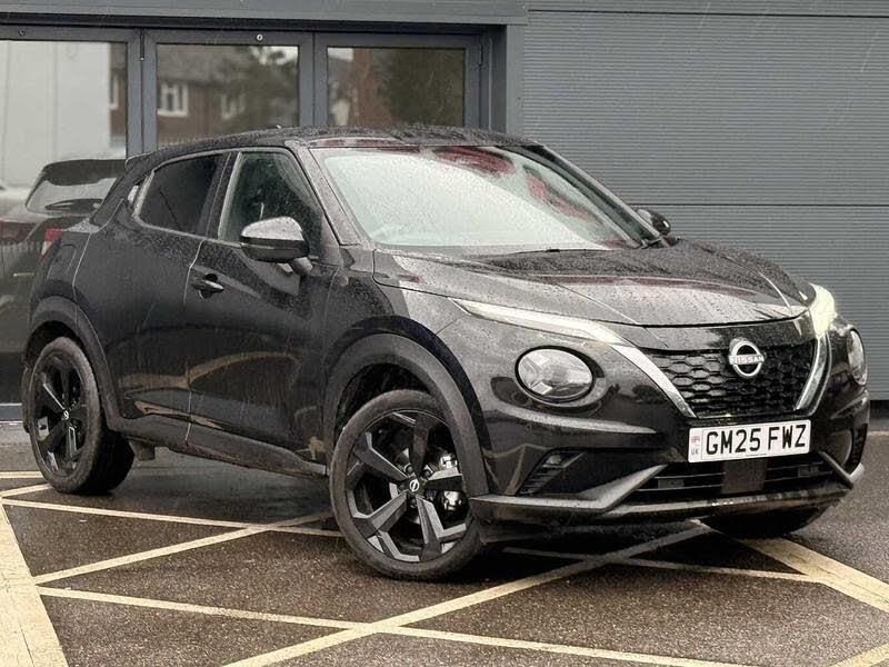 Exterior Features, Pearlescent paint, Paint - Pearlescent, Pearl - Black, Trim - Leather, Synthetic leather - Black, Exterior Features, Front and rear electric window with one touch driver window, One touch passenger window, Rear privacy glass, Rear wiper, Body colour door handles, Rear side wing doors, Roof spoiler, Shark fin roof antenna in solid Black, Solid black door mirrors, Automatic hazard signal with emergency stop signal, Follow me home headlights, High beam assist, LED 3rd brake light, LED daytime running lights, LED front fog lights, LED headlamps, LED rear fog lamp, LED rear lamps, Three blink turn signal, Safety, ABS with EBD and brake assist, Electric handbrake with auto hold function, Electronic Stability Programme (ESP), Hill start assist, Intelligent emergency braking with pedestrian and cyclist recognition, Traction control, VDC Dynamic Vehicle Control, Drive modes select (Eco, normal and sport), EV mode switch, Front parking sensor, Intelligent driver alert system, Intelligent lane intervention, Lane departure warning system, Power Steering, Rear parking sensor, Traffic sign recognition, Auto dimming frameless rear view mirror, Electrically adjustable door mirrors with integrated indicators, Active ride control, Active Trace Control, Driver and passenger airbags, Driver and passenger side airbags, Front and rear curtain airbags, Height adjustable seatbelts, Rear door child safety locks, Seatbelt reminder for driver/front passenger and rear seats, Three 3 point rear seatbelts, Tyre pressure monitoring system, Audio / Communications, Voice recognition, WiFi connectivity, Wireless Apple CarPlay and Google Android auto, Wireless Smartphone charger, 10 Bose speakers 8 speakers and 2 headrest speakers for driver/passenger seats, 2 X Rear console USB port, Bluetooth system, USB, Aux-in and 12V socket, Bose personal plus audio system, DAB Digital radio, Driver Convenience, Stop/start button, Miscellaneous, 12.3 inch full colour TFT screen combimeter, e-Pedal step, Emergency and breakdown call, Nissan connect 12.3 inch touch screen entertainment system, Nissan connect nav with TomTom traffic, Nissan connect services, Outside temperature sensor, Trip computer, Interior Features, Card holder on driver sunvisor, Driver side rear coat hanger, Front armrest, Front door pockets with bottle holders, Front/rear passenger grab handles, Internal chrome door handles, Luggage board, Multifunction steering wheel, Rear door bottle holders, Smooth synthetic leather steering wheel, Synthetic leather kneepad, Synthetic leather shift knob, Synthetic leather upholstery, Telescopic steering wheel adjustment, Two cupholders in front centre console, Door ambient lighting, Front and rear cabin lights, Gear console ambient circle lighting, Luggage space lighting, Welcome light and console tray ambient lighting, Driver/passenger sunvisors and vanity mirrors, Packs, Comfort pack - Juke, Heat pack with height adjustable passenger seats - Juke, ProPilot pack - Juke Auto, Trim, 3 height adjustable rear headrests, 3 seat bench in 2nd row, 60/40 split folding rear seat, Driver seat back pocket, Front head restraints, Height adjustable driver's seat, Monoform sporty seats, Passenger seat back pocket, Single front passenger seat, Two rear isofix child seat anchorage points with top tether, Security, Alarm, Immobiliser, Intelligent key and start push button with walk away lock and approach unlock functions, Remote central locking, Wheels, 19 inch Alloy wheels, Tyre puncture repair kit