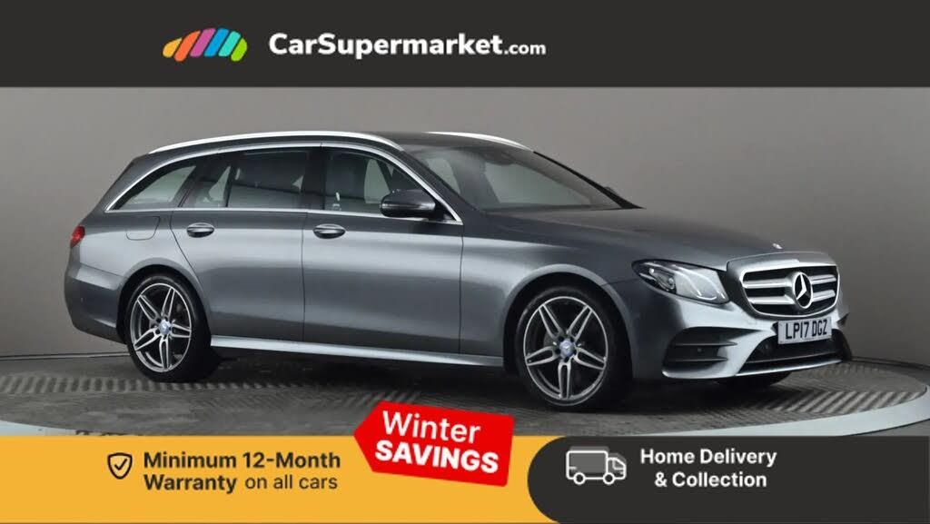 Active park assist with parktronic system,Analogue clock,Attention assist,Bluetooth interface for hands free telephone,Boot release from drivers seat,Brake wear warning light,DYNAMIC SELECT with a choice of driving modes (ECO, Comfort, Sport, Sport+ and Individual),Easy-pack tailgate - Powered opening/closing automatically,Multi function trip computer,Outside temperature display,Park assist pilot with front and rear park assist,Remote boot release,Service indicator (ASSYST),Speed sensitive power steering,Diesel particulate filter,DAB Digital radio,Media interface,Steering wheel mounted audio controls,USB/aux input socket,Adaptive brake lights,Aerial integrated in rear window,AMG bodystyling,Body colour bumpers,Body colour door handles,Chrome roof rails,Electrically adjustable and heated door mirrors,Heated windscreen wash system,LED Headlights,Polished aluminium upper window surround,Rain sensor windscreen wipers,3 spoke AMG steering wheel in Nappa leather,40:20:40 split folding rear bench seat,Ambient lighting,Artico man-made leather upper dash trim,Auto Mercedes-Benz child seat recognition sensor,Black roof lining,Chrome door pins,Electric seat adjustment,Electric seat back adjustment,Folding shopping box,Front and rear door pockets,Front centre armrest with storage compartment,Front door sills with Mercedes Benz lettering,Heated front seats,Height/reach adjust steering wheel,Interior rear light/integral reading lights,Isofix rear child seat fastenings,Lockable/illuminated air conditioned glovebox,Multi function steering wheel,Sports pedals with stainless steel surfaces and rubber studs,Storage compartment with 12V socket in centre console,Sunvisors with illuminated vanity mirrors,Interior lighting pack - E Class,Mirror pack - E Class,Seat comfort pack - E Class,3x3 point rear seatbelts,Active bonnet,Active brake assist,Childproof rear door locks,Driver and passenger side/thorax airbags,Driver/front passenger airbag,Drivers knee airbag,Electronic parking brake,Hill hold assist,Hill start assist,Pre-Safe anticipatory safety system,Seat occupancy sensor,Seatbelt warning,Tyre pressure monitoring system,Warning triangle and first aid kit,Window airbags,Alarm system/interior protection/immobiliser,Chrome surround in electric key,Keyless start,High gloss black centre console,Run flat tyres