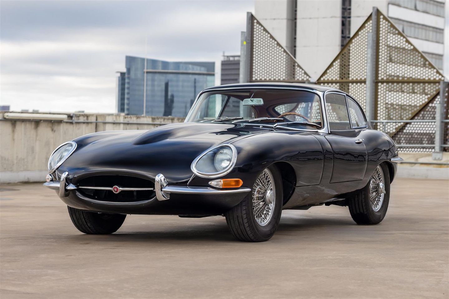 Externally, the car is finished in Gloss Black, it’s a solid colour choice, the black paintwork draws the focus to the E-Types long bonnet and rear haunches and helps to highlight details that might otherwise be missed. The wire wheels are wrapped in a matching set of Toyo Proxes tyres.