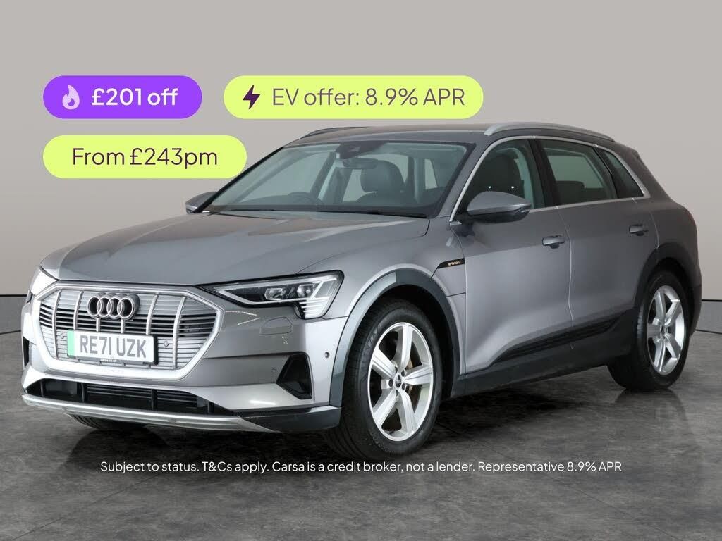 Experience electric driving in the Audi e-tron SUV, finished in stylish grey. Enjoy premium comfort with heated leather seats, driver memory settings, and electric seat adjustment. Stay entertained with the upgraded sound system, MMI Navigation Plus, and seamless Apple CarPlay. Confident driving comes with adjustable suspension, LED headlights for excellent visibility, and a reversing camera for easy parking. Lane Departure Warning and cruise control make every journey relaxing and safe. Discover the future of luxury driving today. 1 service recorded, last serviced on 29/11/2025 at 42,398 miles. MOT to 25/11/2026. Visit our website for service history, online valuation, full vehicle specification plus multiple images. Certain features listed may be available via subscription packages at extra costs, please consult with Audi for details. This vehicle is VAT qualifying. Any feature/option specified here is from 3rd party data. We cannot guarantee the accuracy of any specification supplied by a 3rd party. We recommend that you physically check the specification of the vehicle on site prior to purchase. This information does not form part of the buying contract. Terms & Conditions apply. We have over 2,000 cars available from our 10 national branches, check our website to see all our stock. Our Trustpilot rating is 4.4/5 with over 9,000 reviews.