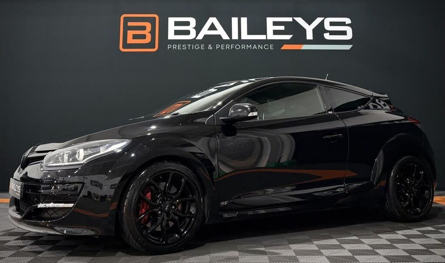 FOR SALE 2015 (65) Renault Megane 275 2.0T 16V Renaultsport Coupe 3dr Petrol Manual Euro 6 finished in stunning Diamond Black, 68k miles, - Priced to sell at £8,995 68,651 miles backed by DVSA Mot expiry- 12 Months Fully Hpi clear. Here at Baileys we are proud to offer this diamond black 2015 Renault Megane 2.0T Renaultsport 275 Coupe 3dr Petrol Manual which is in great condition throughout and will make the perfect track toy for someone. This particular example has the Cup Chassis Pack which ticks all the required boxes for that perfect weekend/B road car. The car is in good condition throughout and the gloss black paintwork really pops. Comes with Accelera 651 sport tyres on the front along with brembo brakes ! The car has been lowered on H&R lowering springs which really makes the car stick to the road and enhances that already aggressive appearance. Unfortunatley the previous owner has lost the history however we have done a full pdi inspection, 12 months mot and full service so its all ready for the new owner. All in all a lovely example for someone to get into and enjoy for years to come. Please see below for full specifications Spec Cup Chassis Pack Res Delete and Backbox Delete H&R Lowering Spring Accelera 651 Sport Tyres on the front Red Brembo Brakes Gloss Black Alloy Wheels Rs Mode Reverse Camera Daytime Running Lights Black Renault Badges Media Centre Parking Sensors Climate Control Cruise Control Absolutely great example which has been priced fairly at £8,995 Contact us for further information or to book a viewing/test drive. Finance available, Please contact us for more info Warranties available from 12 - 36 months starting from just £59 a month at 0% APR