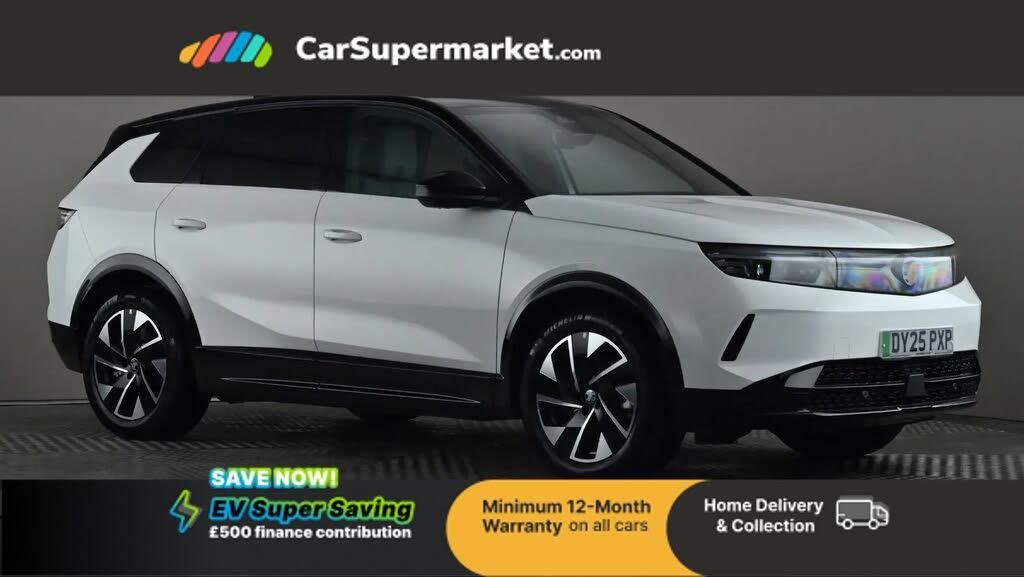Sat Nav, Apple CarPlay, Android Auto, Cruise Control, Adaptive Cruise Control, Traffic Sign Recognition, Parking Sensors, Heated Front Seats, Heated Steering Wheel, Keyless Entry, 19" Alloy Wheels;This 2025 Vauxhall Grandland Electric GS is a good example, having had only one owner since new. This electric SUV offers a generous maximum range of 322 miles, making it ideal for both daily commutes and longer journeys. Its battery boasts a total capacity of 81 kWh, and you can achieve a full charge at home using a 7kW charger in approximately 6 hours and 45 minutes. For quicker top ups, the fastest public charging time from empty to 80% is an impressive 34 minutes. This vehicle also comes equipped with Automatic Air Conditioning, a Wireless Charger for Mobile Devices, a Heated Steering Wheel for those colder mornings, and Keyless Entry and Start for ultimate convenience. Furthermore, its MOT is valid until March 2028, providing peace of mind.